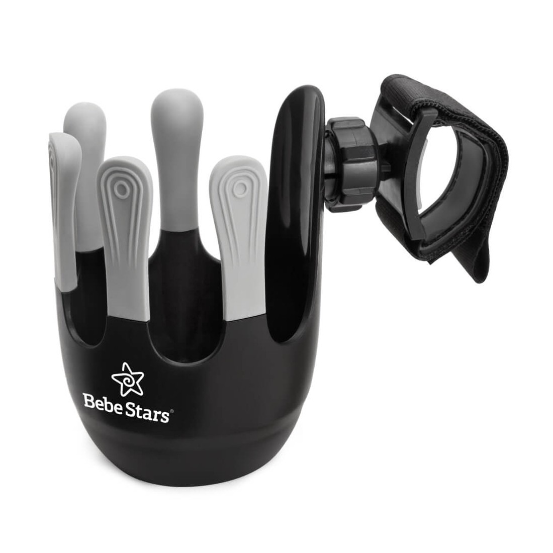 Ποτηροθήκη για όλα τα καρότσια. Η νέα ποτηροθήκη της Bebe Stars έχει μοναδικό σχήμα “δαχτύλων”. ώστε να κρατά με ασφάλεια κύπελλα . ποτήρια και μπουκάλια οποιουδήποτε μεγέθους. Η περιστροφή 360ο λόγω της μπίλιας που διαθέτει και ο ρυθμιζόμενος ιμάντας Velcro παρέχουν άνεση και ευελιξία. Με εύκολη εγκατάσταση και πλήρη συμβατότητα. ώστε να ταιριάζει σε όλα τα καροτσάκια. Κατασκευασμένο από υλικά φιλικά προς το περιβάλλον.