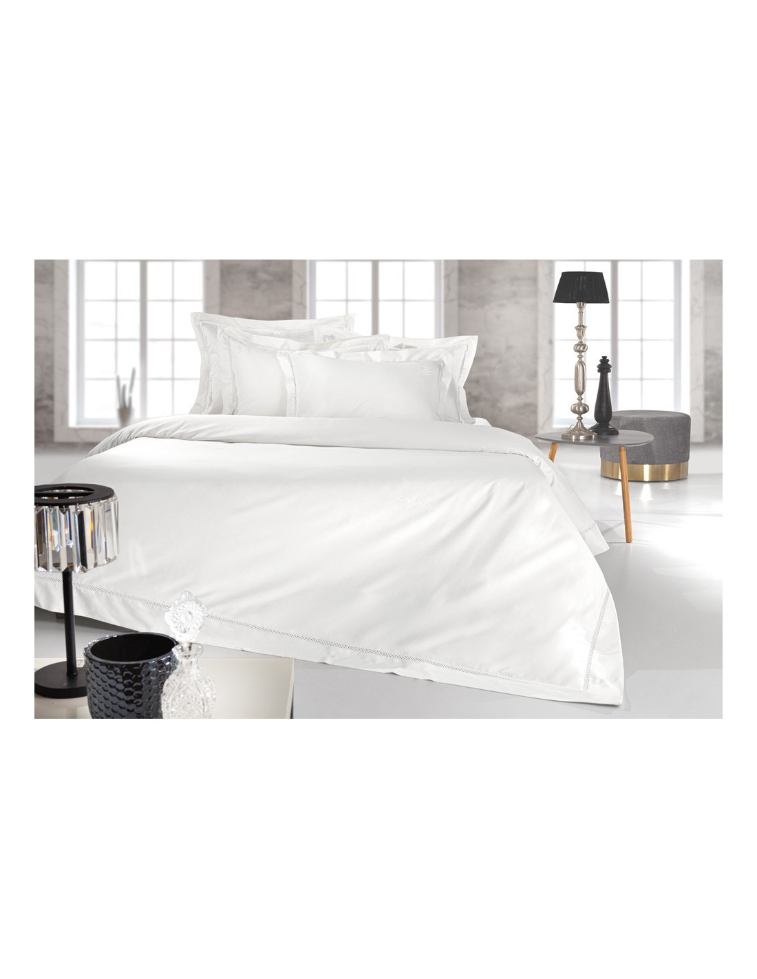 Σετ σεντόνια king size 4 τεμαχίων βαμβακοσατέν με κέντημα guy laroche blend white 270x280