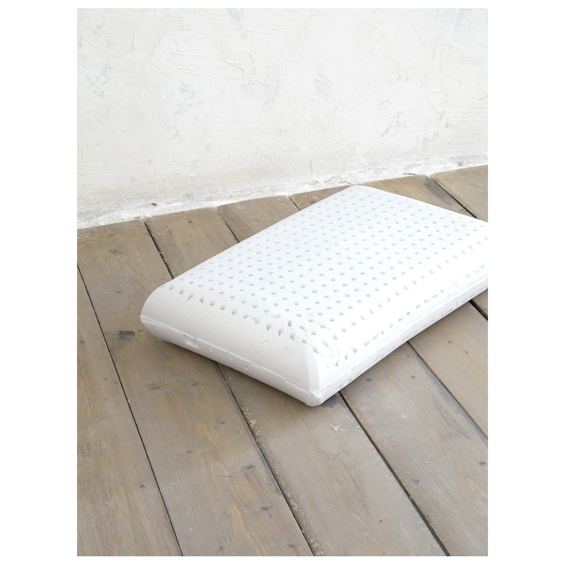 Μαξιλάρι Latex με γέμισμα 100% latex και εξωτερικό κάλυμμα από 100% polyester με ύφανση jacquard. Το εύκαμπτο υλικό του προσφέρει στήριξη στο κεφάλι και τον αυχένα για άνετο και υγιή ύπνο. Το κάλυμμά του έχει ανάγλυφη jacquard ύφανση και είναι αποσπώμενο, αφαιρείται εύκολα με φερμουάρ και πλένεται στο πλυντήριο. Το υλικό κατασκευής του είναι 100% φυσικό και προέρχεται από ειδική επεξεργασία του χυμού του καουτσουκόδεντρου ο οποίος στερεοποιείται. Διαθέτει ομοιόμορφες ανοιχτές κυψέλες που διευκολύνουν τον αερισμό του για μεγαλύτερη άνεση στον ύπνο. Είναι μέτριο ως προς τη σκληρότητα και κατάλληλο για όποια στάση ύπνου και αν κοιμάστε.