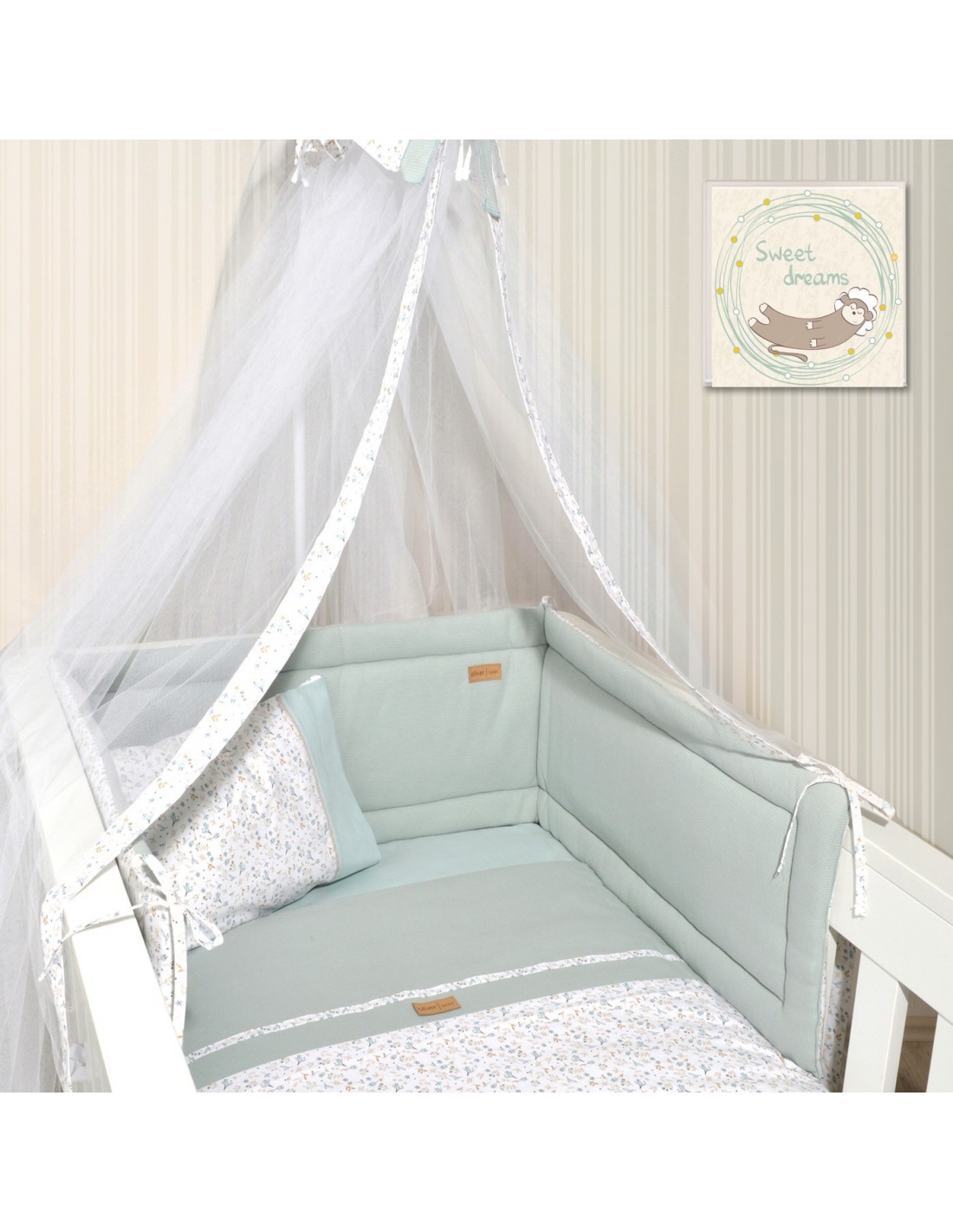 Σετ πάπλωμα και παπλωματοθήκη κούνιας baby oliver des. 403 μέντα 100x140