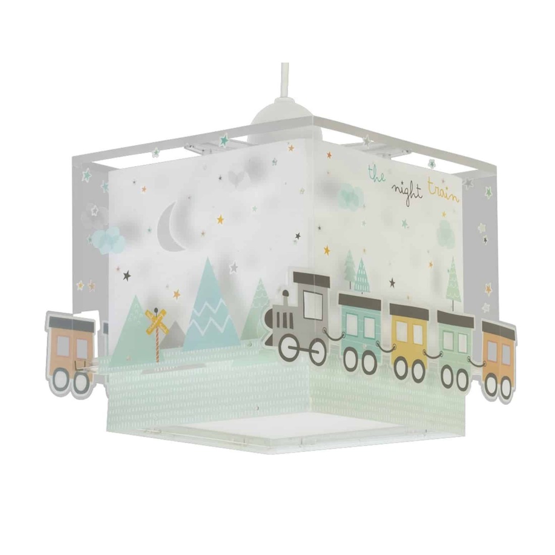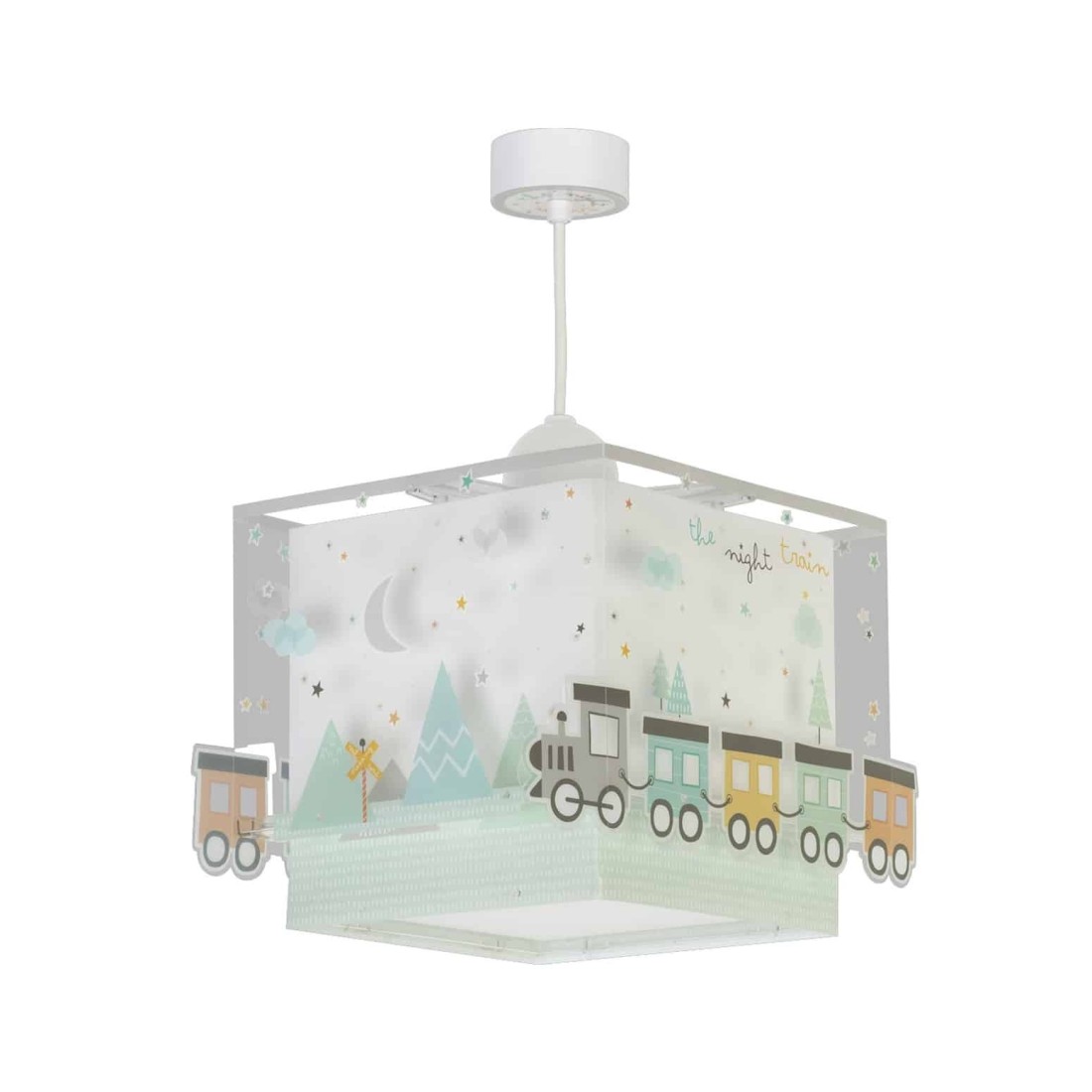 Παιδικό φωτιστικό οροφής κατάλληλο για γενικό φωτισμό. Διπλού τοιχώματος με διάφανο εξωτερικό τοίχωμα. Φωσφορίζοντα μέρη στο εξωτερικό του τοίχωμα. Συνθετικό υλικό αντοχής πολυπροπυλενίου. Κιτ ανάρτησης ρυθμιζόμενο στο ύψος με διακοσμημένη ροζέτα. Παρέχεται διαχυτής φωτός για ομοιόμορφο φωτισμό. Κατασκευασμένο εξ ολοκλήρου στην Ευρώπη. Το The Night Train κρεμαστό οροφής συμπληρώνει τα υπόλοιπα παιδικά φωτιστικά της συλλογής και είναι εξαιρετικά εύκολο στην εγκατάστασή του.