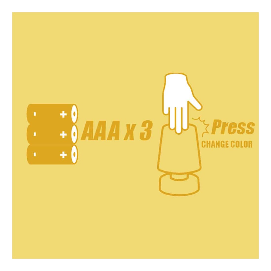 Το Unicorn Pusher φωτιστικό νύκτας LED είναι κρύο στην επαφή και λειτουργεί με τρεις μπαταρίες AAA, που δεν περιλαμβάνονται.