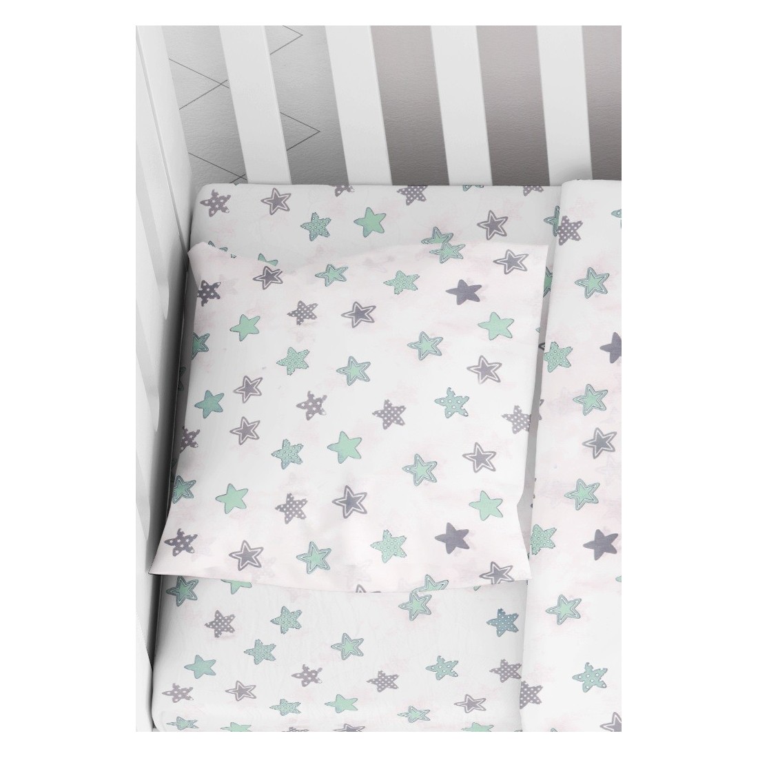 Βρεφική Μαξιλαροθήκη Dimcol Star 101 Green, εμπριμέ με χαρούμενα χρώματα και παραστάσεις.