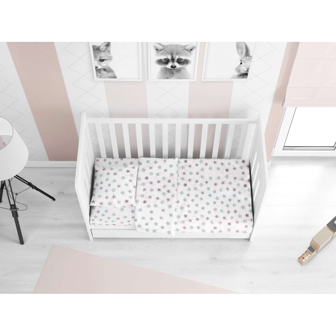 Βρεφική Παπλωματοθήκη Dimcol Star 101 Green, εμπριμέ με χαρούμενα χρώματα και παραστάσεις, για παπλωματάκι κούνια με φερμουάρ.