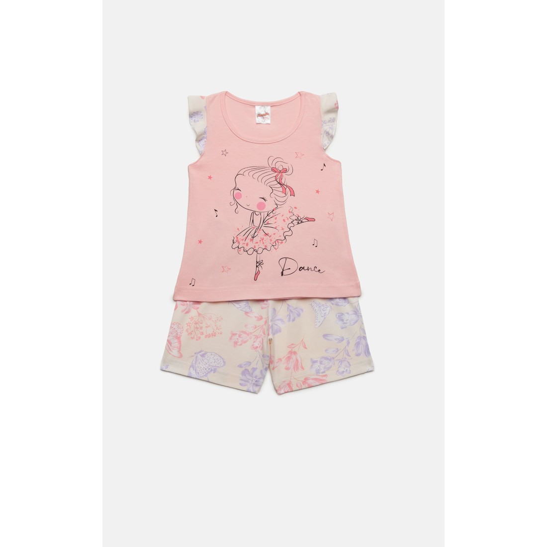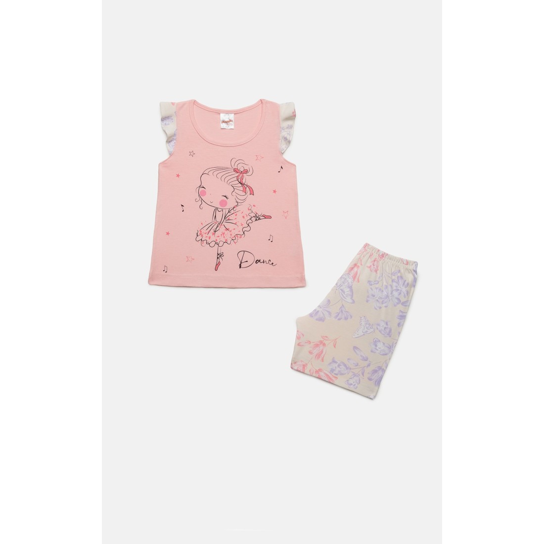 Βρεφική θερινή πιτζάμα για κορίτσι από 100% απαλό βαμβακερό ύφασμα υψηλής ποιότητας. Το σετ περιλαμβάνει αμάνικη μπλούζα με βολάν στα μανίκια, τύπωμα και floral σορτσάκι. Συνδυάστε με τις αντίστοιχες γυναικείες πιτζάμες και δημιουργήστε το απόλυτο mother & daughter look.