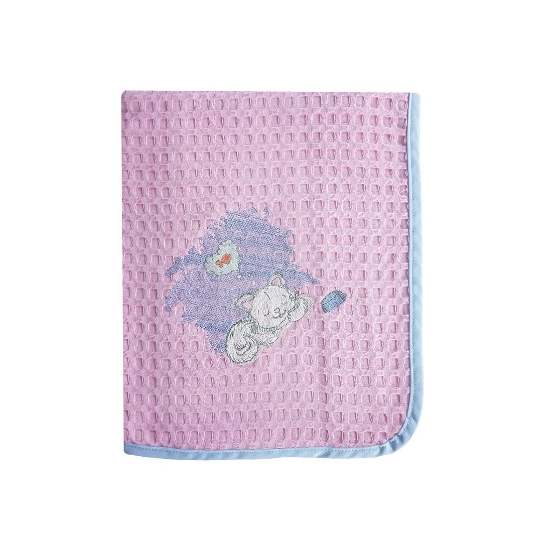 Κουβέρτα Πικέ Αγκαλιάς Dimcol Γατάκι 127 Ροζ/Σιέλ 80x110