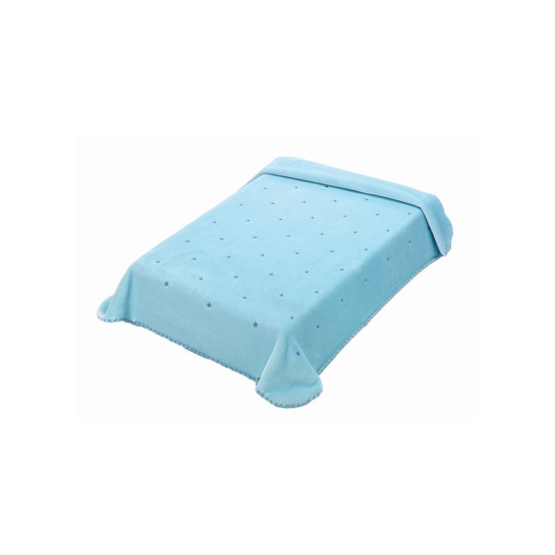 Πλούσια. ακρυλική κουβέρτα με βελουτέ υφή από τη Morven. κατασκευασμένη στην Ισπανία από τον οίκο Mora. To κέντημα είναι διάσπαρτα αστεράκια στην επιφάνεια. Το τελείωμά της είναι με βελονάκι ώστε να είναι εύκαμπτη. Η διαδικασία παραγωγής είναι σύμφωνη με τις αυστηρότερες ευρωπαϊκές προδιαγραφές προστασίας του περιβάλλοντος.