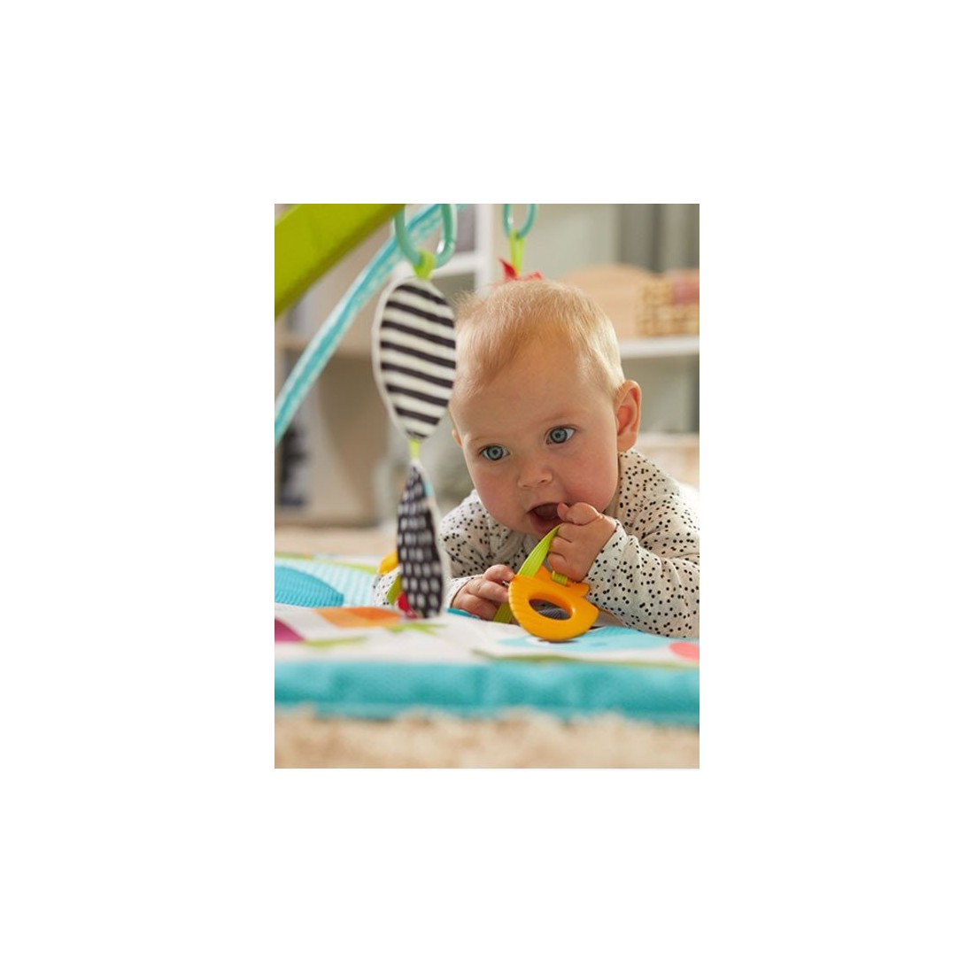 Ένα χαλάκι δραστηριοτήτων που εμπνέει την εξέλιξη του μωρού σας με τα κρεμαστά παιχνίδια τους ήχους και την αφή.