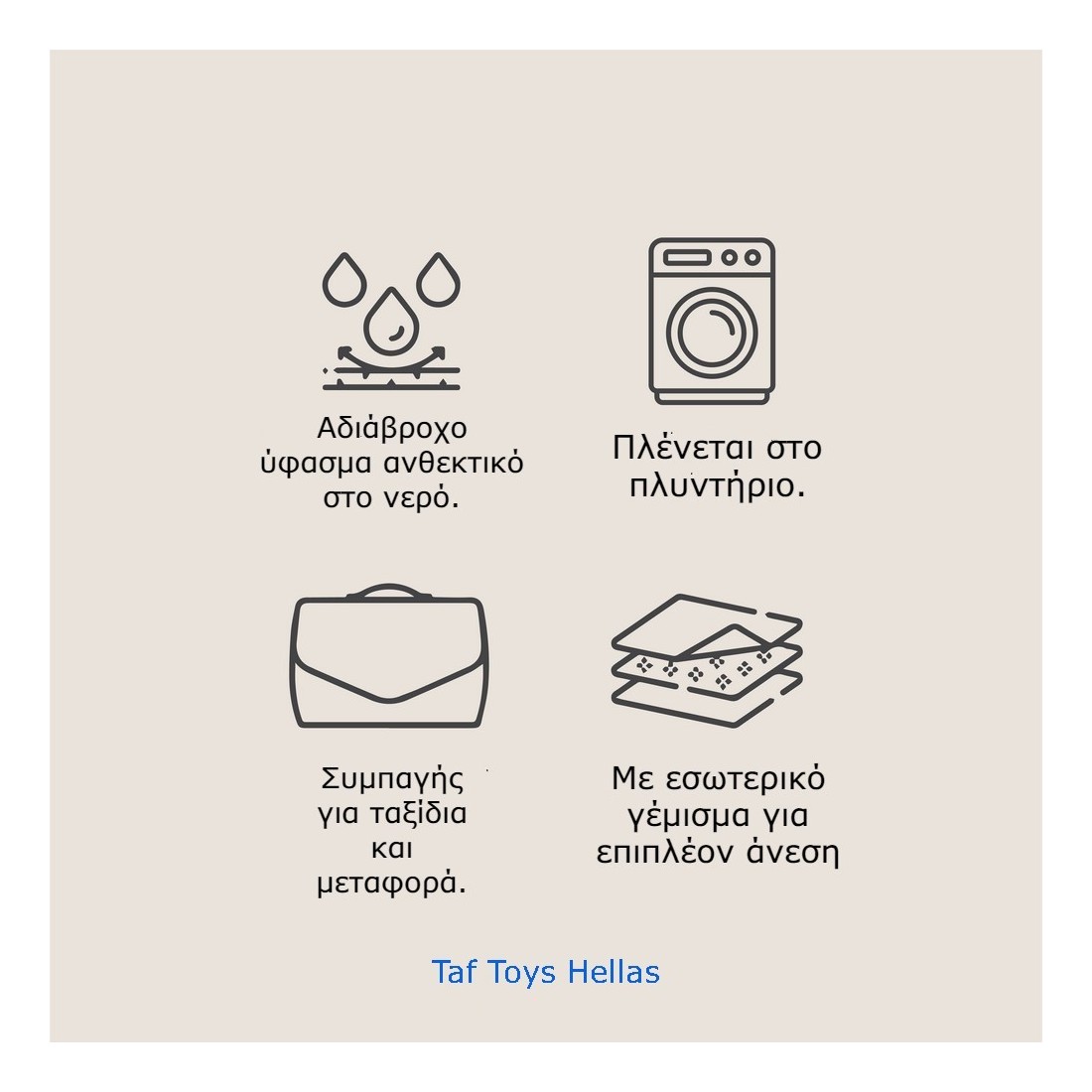 Η μεγάλη γκάμα προϊόντων της Taf Toys σας παρέχει αναπτυξιακά παιχνίδια που αντιστοιχούν στην ηλικία του μωρού σας και που είναι προκλητικά, διασκεδαστικά και εμπνέουν τη φαντασία. Όλα τα παιχνίδια έχουν δημιουργηθεί με σκοπό να προωθήσουν τη συναισθηματική, γνωστική και σωματική ανάπτυξη του μωρού σας κατά τα δύο πρώτα χρόνια ανάπτυξής του