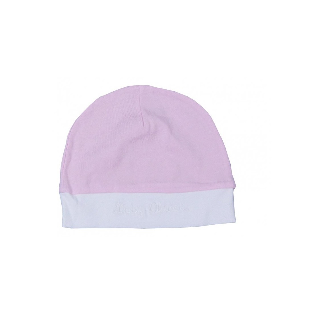 Βρεφικό σκουφάκι από τη Baby Oliver, από ύφασμα ζέρσυ από 100% βαμβάκι πενιέ με πιστοποίηση Oekotex ζέρσευ σε χρώματα ροζ-λευκό
