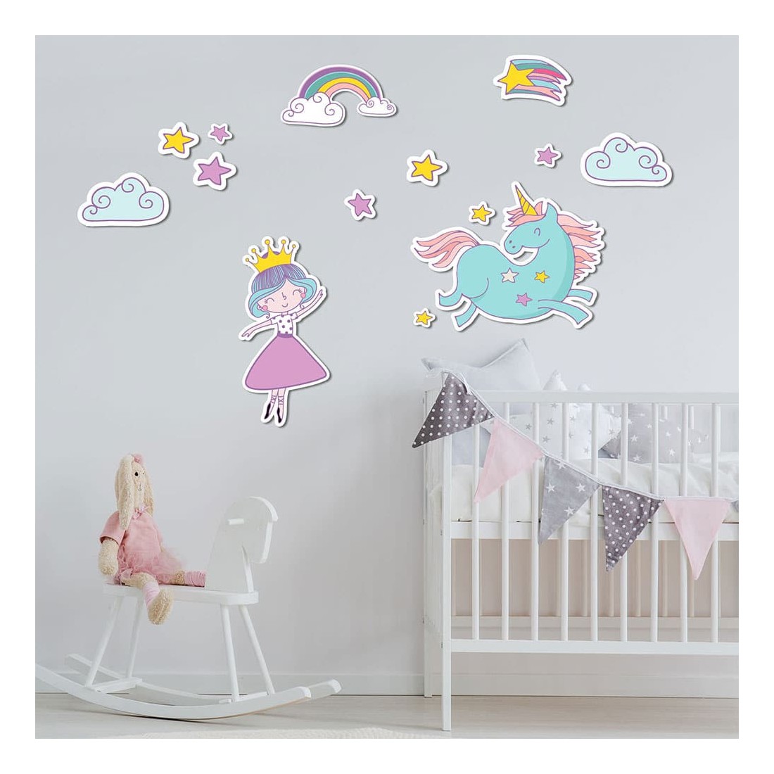 Τα Unicorns Princess αυτοκόλλητα τοίχου επανατοποθετούνται χωρίς ζημιές και έρχονται σε καρτέλα, κομμένα και έτοιμα για χρήση.