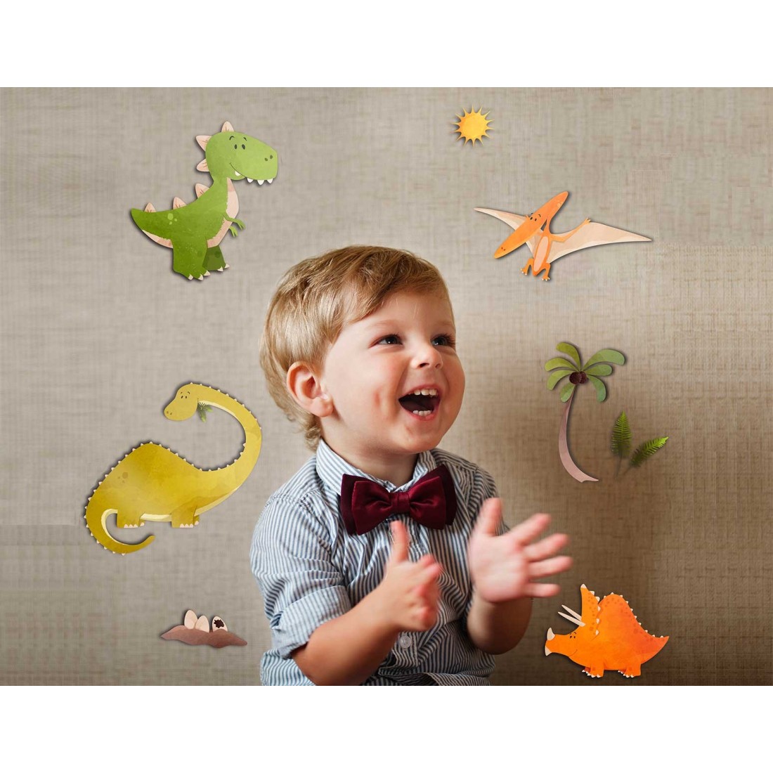 Καλωσορίστε το παιδί σας σε ένα δωμάτιο με απαλά χρώματα και σχέδια κατάλληλα για τα πρώτα του χρόνια. Προσαρμόστε τις διακοσμήσεις των τοίχων σας, τις πόρτες και τα έπιπλα με βάση την ηλικία του παιδιού σας. Διακοσμήστε με φαντασία σε ελάχιστο χρόνο αποτελεσματικά και οικονομικά δίδοντας μια προσωπική “πινελιά” στο δωμάτιο του παιδιού σας. Τα Dinosaurs αυτοκόλλητα 3 επιπέδων Medium είναι εξαιρετικά εύκολα στην τοποθέτησή τους με δυνατότητα επανατοποθετήσεως χωρίς ζημιές στο τοίχο ή το αυτοκόλλητο.