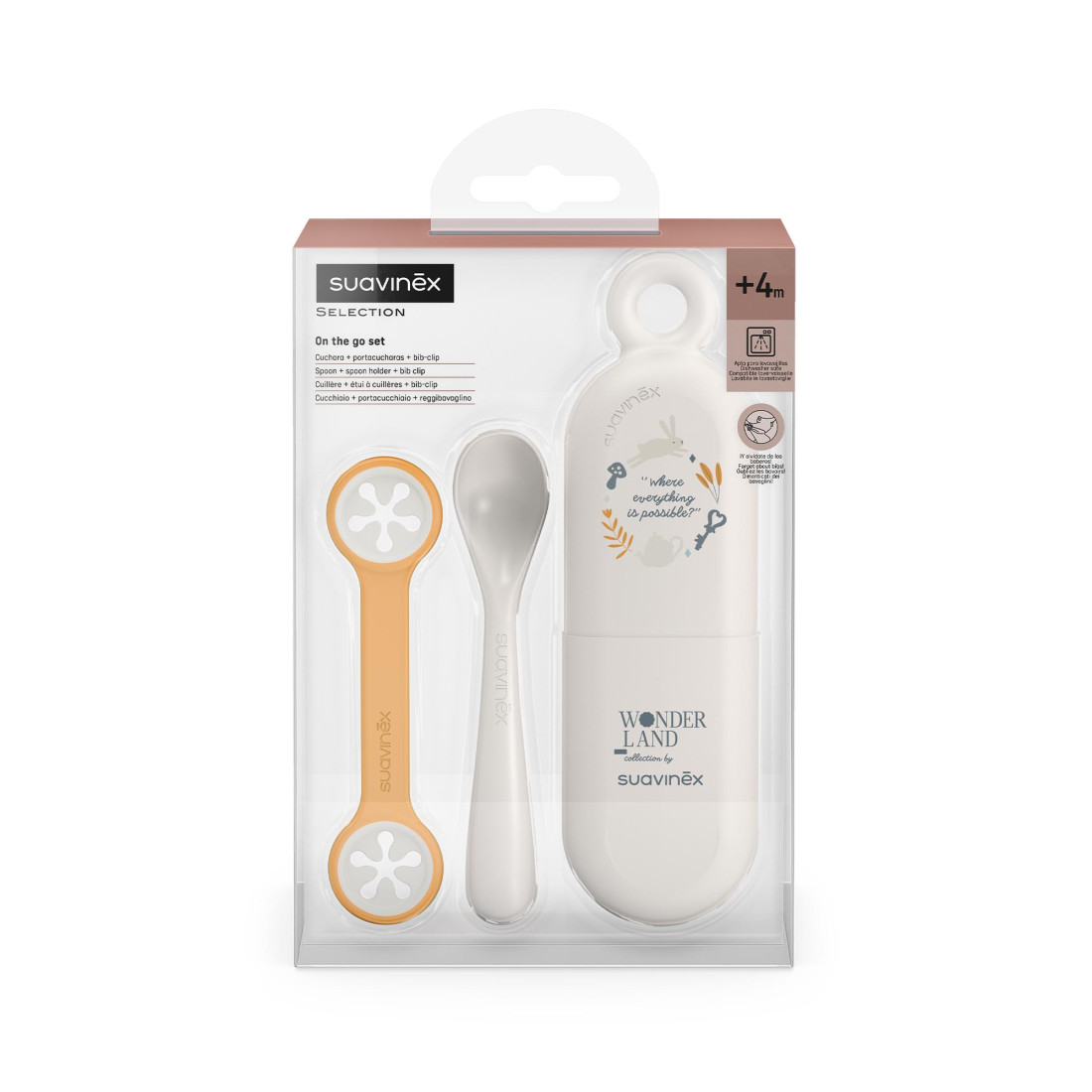 Ένα εργονομικό κουτάλι, μια κουταλοθήκη και ένα κλιπ σαλιάρας που σας επιτρέπει να μετατρέψετε μια απλή χαρτοπετσέτα σε σαλιάρα επί τόπου.Κουταλοθήκη Χωρητικότητας 2 κουταλιώνΈνα κλιπ σαλιάρας που σας επιτρέπει να μετατρέψετε μια απλή χαρτοπετσέτα σε