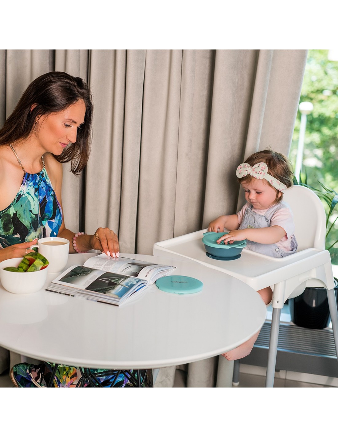 Η βάση είναι με βεντούζα οπότε το μπολ δεν μετακινείται στο τραπέζι και δε υπάρχει κίνδυνος να χυθεί το περιεχόμενό του.