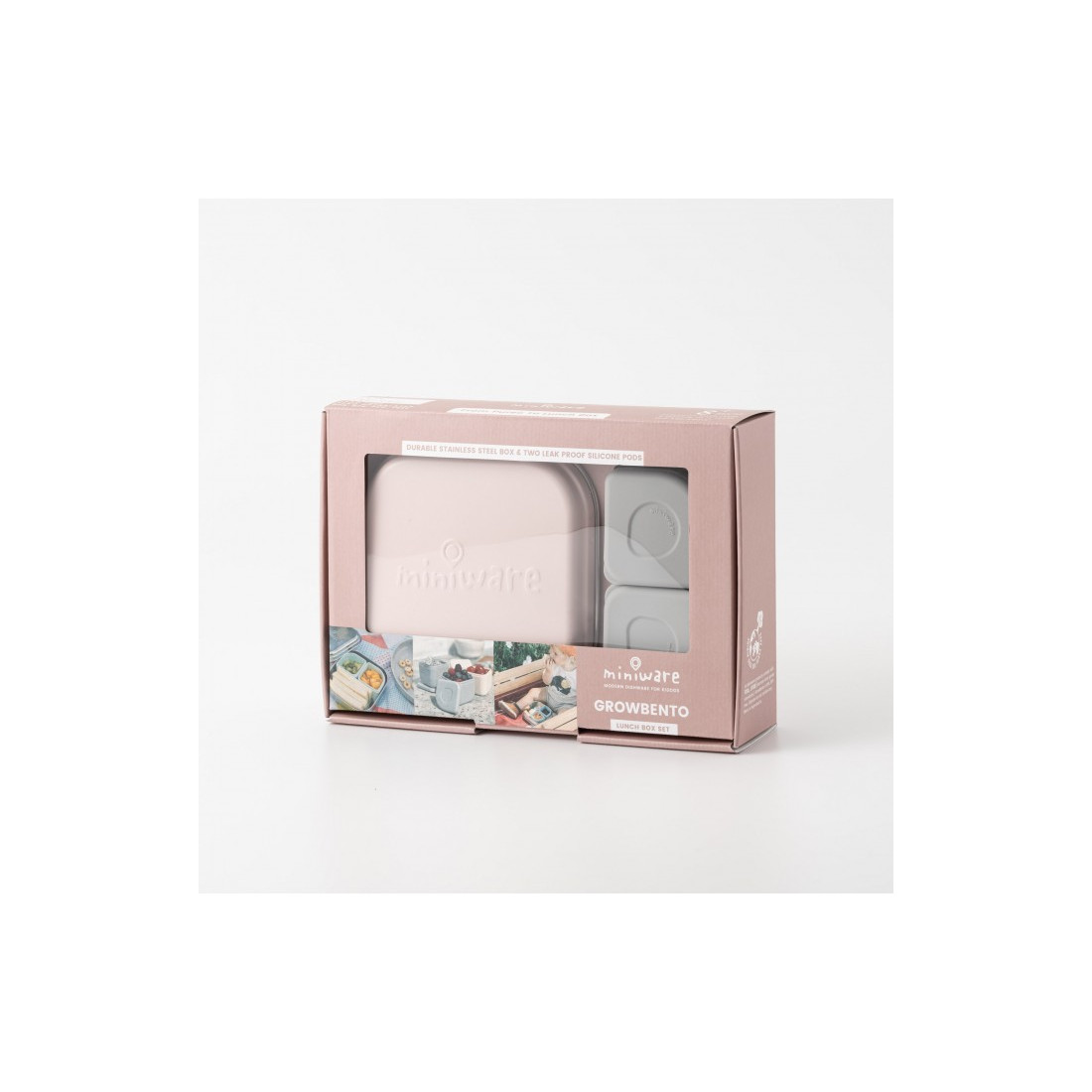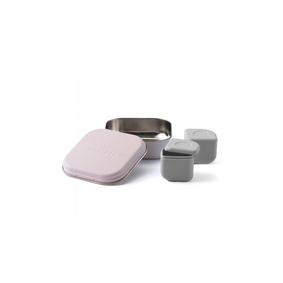 Δοχείο φαγητού 15x15cm από ανοξείδωτο ατσάλι με 2 δοχεία σιλκόνης 7x7cm, , Συσκευασία σε κουτί με παράθυρο |