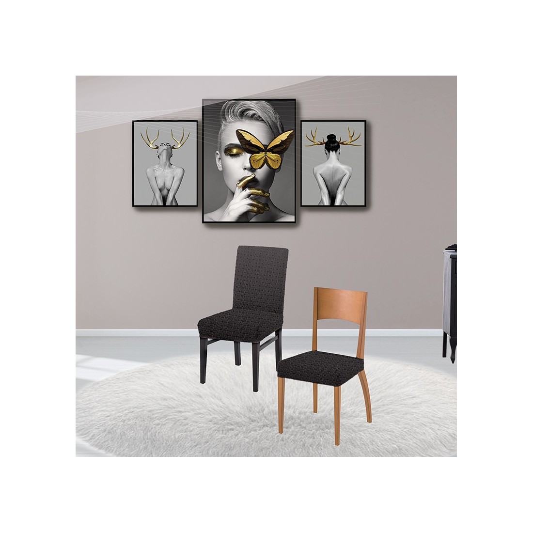 Σετ Ελαστικά Καλύμματα Καρέκλας 2 Τεμαχίων Sb Home Sabrina Grey που εφαρμόζουν ιδανικά στο κάθισμα της καρέκλας σας, προστατεύοντας της και χαρίζοντας ένα όμορφο αποτέλεσμα.