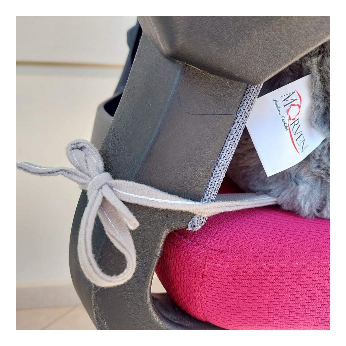 Μαξιλαράκι της Morven με γούνινη επιφάνεια και πλάτη. Περιλαβάμβάνει κορδώνια για να δένεται στην καρέκλα και η κάτω του επιφάνεια είναι αντιολισθητική.