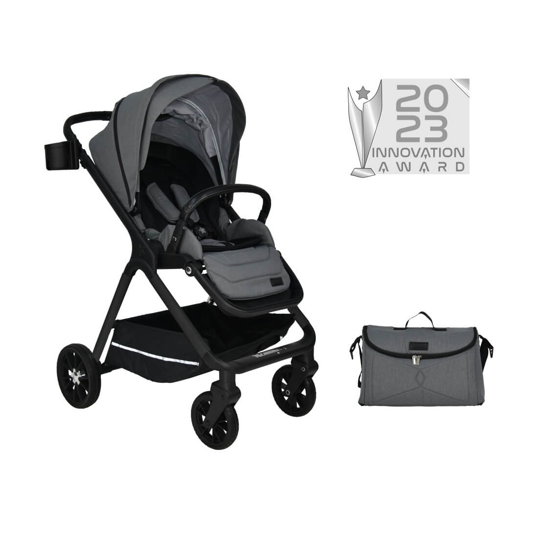 Το νέο και καινοτόμο καρότσι Nammos της Bebe Stars είναι ελαφρύ. μοντέρνο. άνετο και ποιοτικό! Το Nammos είναι κατάλληλο για χρήση από τη γέννηση του παιδιού έως 36 μηνών ή μέχρι 22 kg. -Σύγχρονος και ανατομικός σχεδιασμός. -Σκελετός αλουμινίου. εξαιρετικά ελαφρύς με εύκολη και γρήγορη αναδίπλωση. -Εύκολο άνοιγμα – κλείσιμο και από τις δύο κατευθύνσεις. -Κατάλληλο ακόμα και για τα πιο μικρά πορτμπαγαζ. λόγο του ελάχιστου χώρου που καταλαμβάνει. -Εργονομική χειρολαβή ρυθμιζόμενη καθ’ ύψος. 3 θέσεων από 0.99 έως 106 cm. -Πολυτελή. ραμμένες στο χέρι λεπτομέρειες από οικολογικό δέρμα στα χερούλια και στην προστασία. -Αναδιπλούμενη XL τέντα με παράθυρο και Anti-UV για ηλιοπροστασία. με ειδικό δίχτυ για έξτρα αερισμό. -Παράθυρο στο πάνω μέρος με μαγνητικό κλείσιμο. -Αναστρέψιμη θέση. η οποία έχει memory mechanism. -Ρυθμιζόμενη πλάτη 3 θέσεων και υποπόδιο ρυθμιζόμενο σε 3 θέσεις. -Ζώνη ασφαλείας 5 σημείων με μαγνητική πόρπη και επωμίδες. -Αποσπώμενη μπροστινή προστασία. -Περιλαμβάνει ποδόσακο. κουνουπιέρα και αδιάβροχο. τα οποία προστατεύουν το παιδί από το κρύο. τα έντομα και τη βροχή. -Ποτηροθήκη με θέση για smartphone. -Μεγάλο. πρακτικό καλάθι (μέγιστο βάρος 3kg). -Ανθεκτικοί τροχοί με επίστρωση PU για μεγαλύτερη διάρκεια στο χρόνο. σταθεροί ή περιστρεφόμενοι 360°. -Αναρτήσεις και στις τέσσερις ρόδες για τη μέγιστη απορρόφηση των κραδασμών. -30%25 λιγότερη προσπάθεια ώθησης χάρη στο εξελιγμένο σύστημα. το οποίο διαθέτει ο κάθε τροχός. -Φρένο στους πίσω τροχούς. Εναρμονίζεται με τον ευρωπαϊκό νόμο ΕΝ 1888-1.2:2018 και ΕΝ 1466:2014+AC:2015. ΤΣΑΝΤΑ : -Μοντέρνα. κομψή. άνετη και ευρύχωρη τσάντα. -Κατασκευασμένη από ύφασμα υψηλής ποιότητας. -Ρυθμιζόμενοι ιμάντες για τον καθορισμό του ύψους της τσάντας. -Περιλαμβάνει αλλαξιέρα για το μωράκι σας. -Ενσωματωμένοι γάντζοι για τοποθέτηση στο καρότσι. Μέγιστο βάρος τσάντας όταν κρέμεται από το καρότσι 2kg.