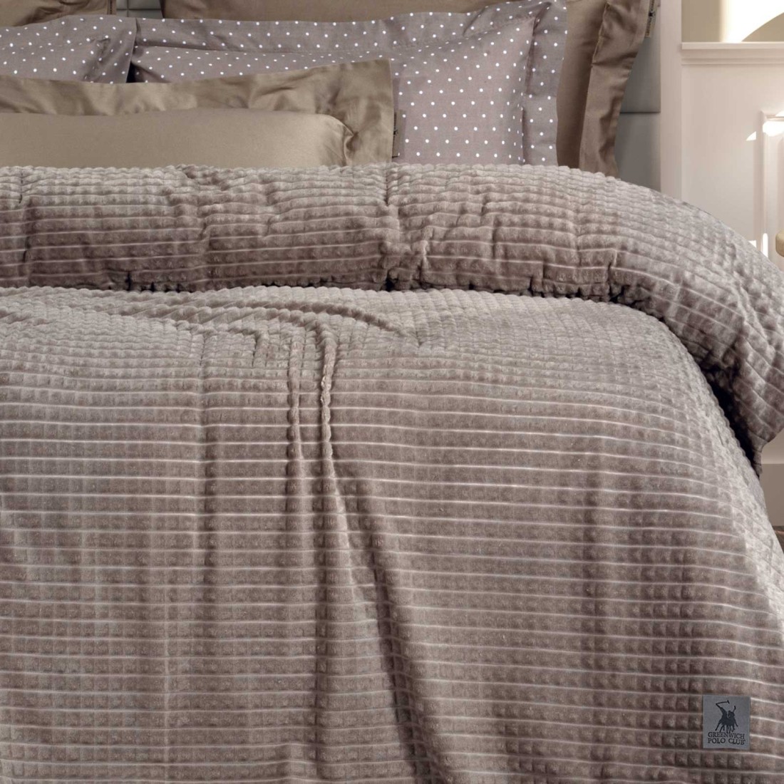 Κουβέρτα Fleece του οίκου Greenwich Polo Club. Είναι από 100% polyester, ιδιαίτερα ζεστή, απαλή στην υφή και με μεγάλη αντοχή με βάρος 280gr/m². Προσφέρεται στη διάσταση 160X220εκ.