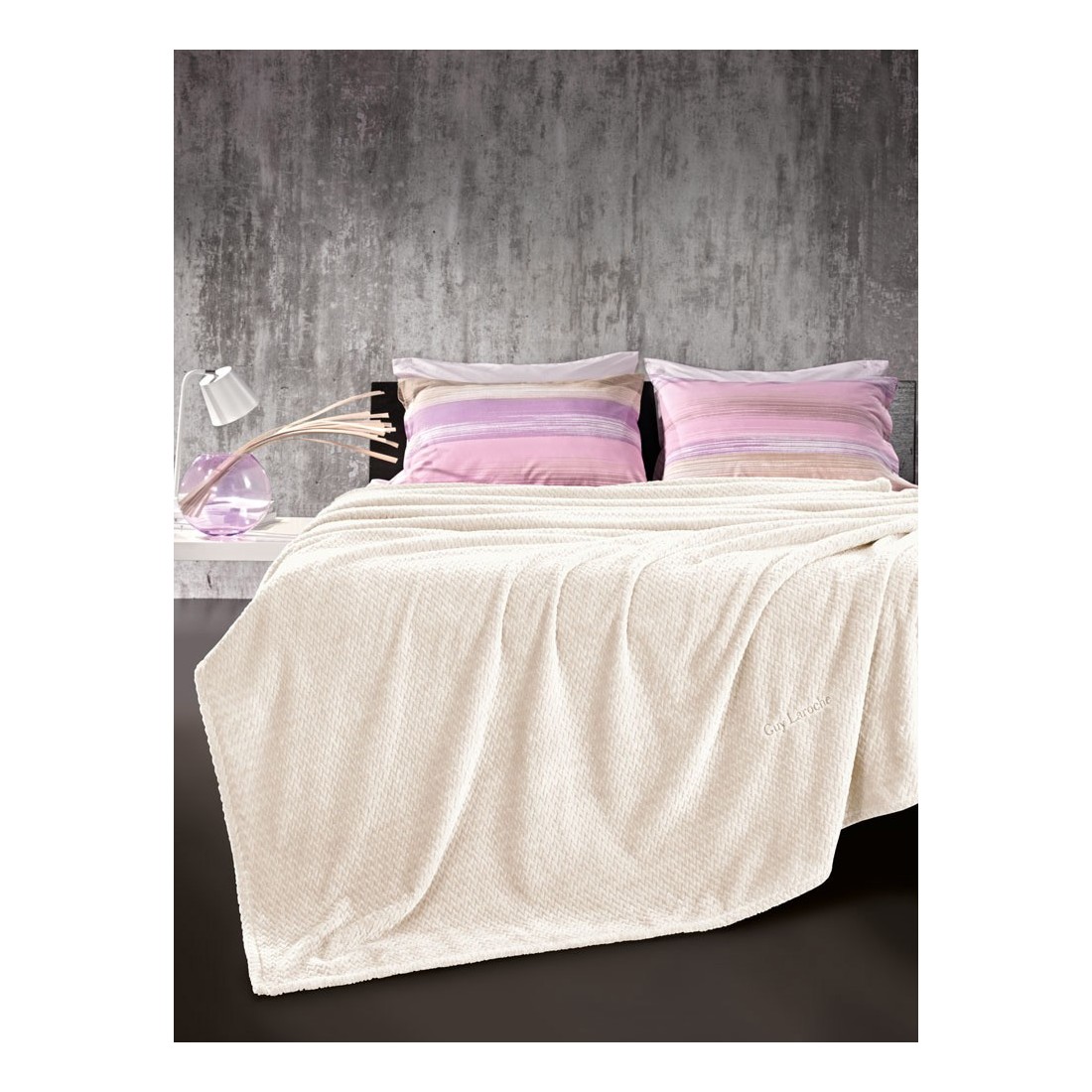 Σετ κουβέρτα fleece μονή και μαξιλαροθήκη διακόσμησης Guy Laroche rombus ecru 160x220