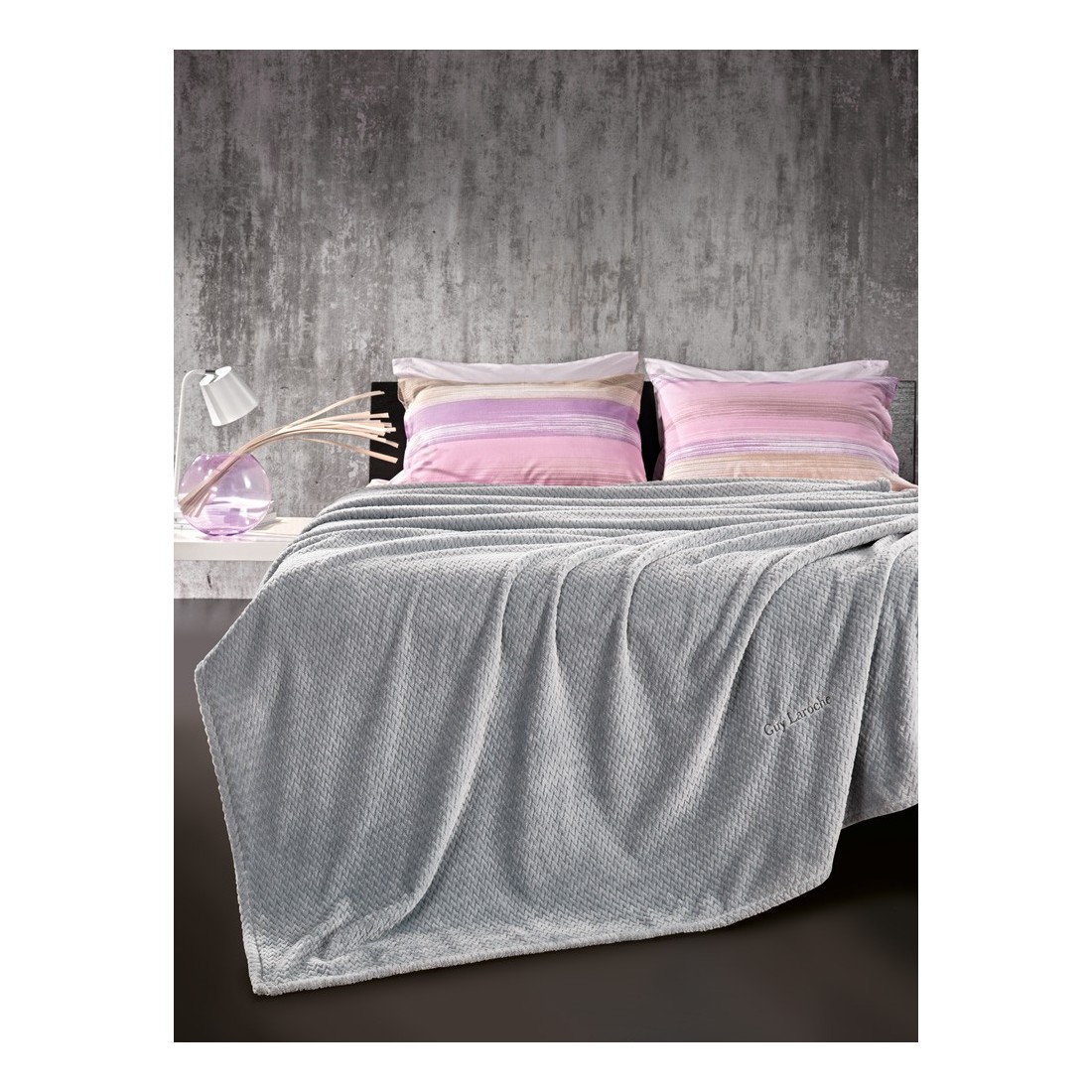 Σετ κουβέρτα fleece μονή και μαξιλαροθήκη διακόσμησης Guy Laroche rombus silver 160x220