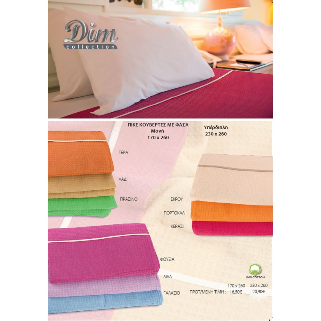 Κουβέρτα Πικέ Υπέρδιπλη Dimcol Πορτακαλί