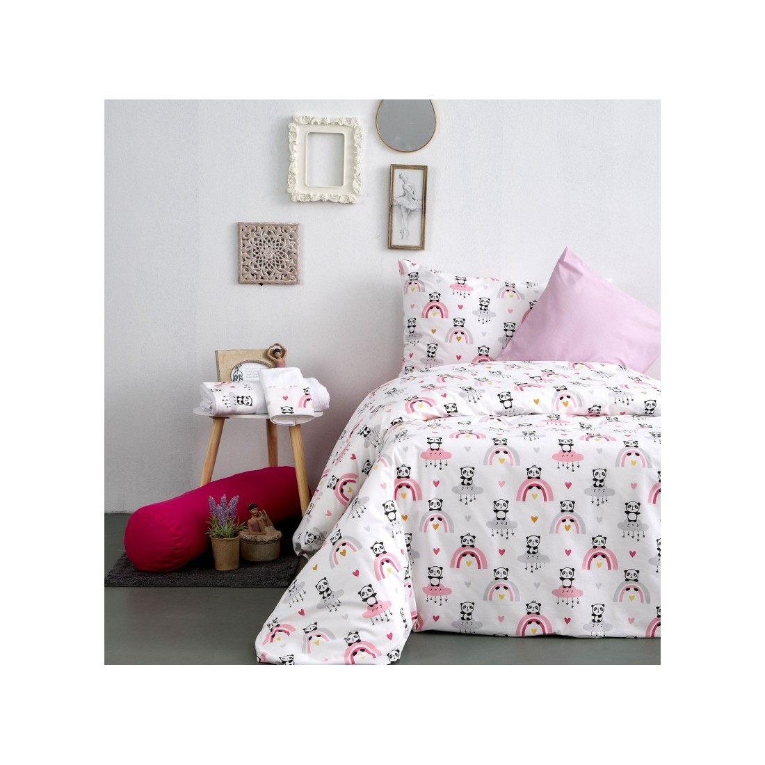 ΚΟΥΒΕΡΛΙ MONO 160X240-PANDA PINK - Σε λευκό φόντο και ρόζ λεπτομέρειες και σχέδιο με ουράνιο τόξο που εντυπωσιάζει τους μικρούς μας φίλους. Ποιότητα πρωτοποριακό design . κατασκευασμένα από 100% βαμβάκι με 152 κλωστές. ύφασμα που αναπνέει ώστε να προσφέρει έναν άνετο και υγιή ύπνο. Με σεβασμό προς το ευαίσθητο παιδικό δέρμα και τις καλύτερες πρώτες ύλες. Θα το βρείτε και με ασσορτί πετσέτες και σετ σεντόνια .