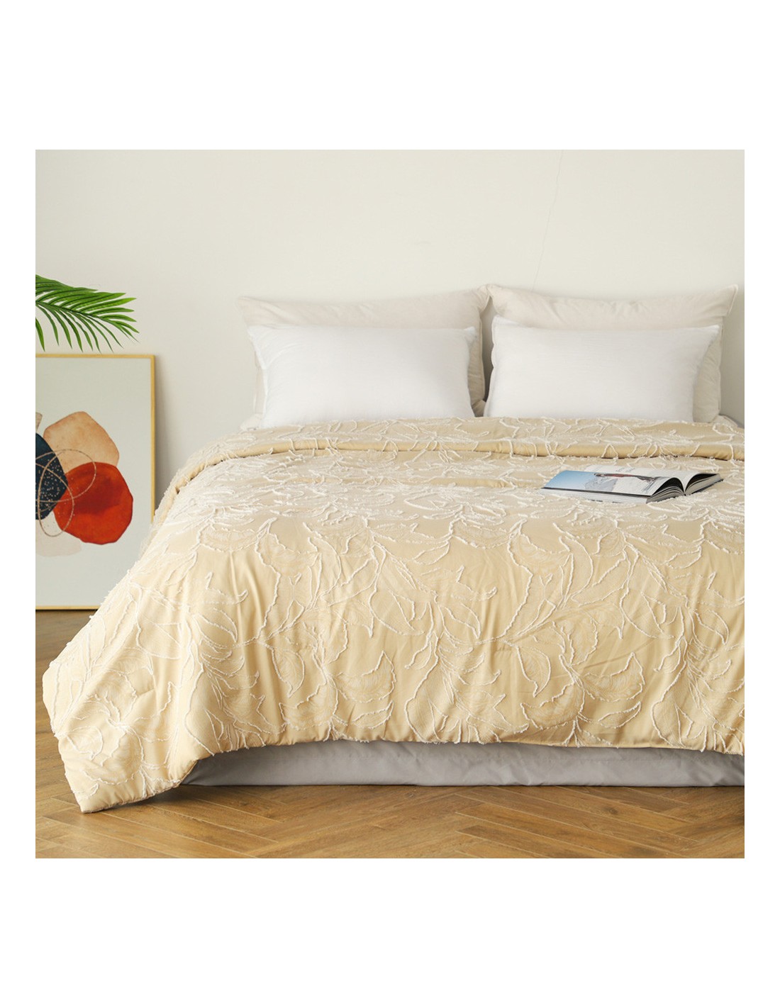 Κουβερλί Kira Beige από 100% prewashed Polyester ύφασμα και πολυεστερική γέμιση 120 gsm, με τεχνική νηματοβαφής. Αποτελεί το κατάλληλο σκέπασμα για άνοιξη & καλοκαίρι, αφού εξασφαλίζει ιδανική θερμοκρασία ενώ παράλληλα προσφέρει μια εξαιρετικά απαλή αίσθηση . Διατίθεται σε μονή και υπέρδιπλη διάσταση.