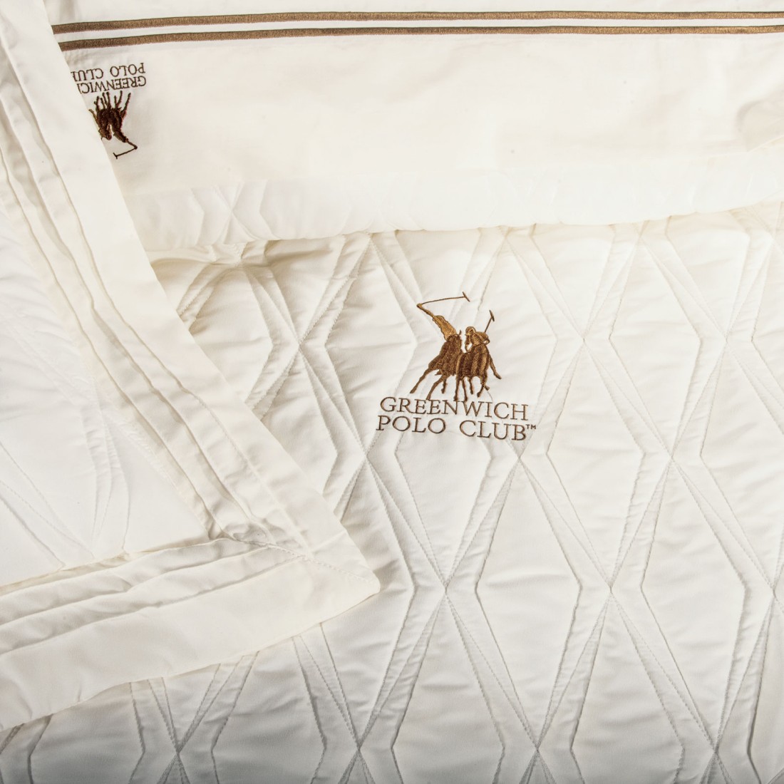 Κουβερλί σετ Greenwich Polo Club της σειράς Premium από 100% microfibre. Αυτό που χαρακτηρίζει την συλλογή είναι οι απαλές αποχρώσεις, τα διακριτικά σχέδια και το διαχρονικό ύφος. Το σετ αποτελείται από ένα κουβερλί σε διάσταση 220Χ240εκ και 2 μαξιλαροθήκες σε διάσταση 50Χ70+8εκ με περιμετρική ραφή oxford.