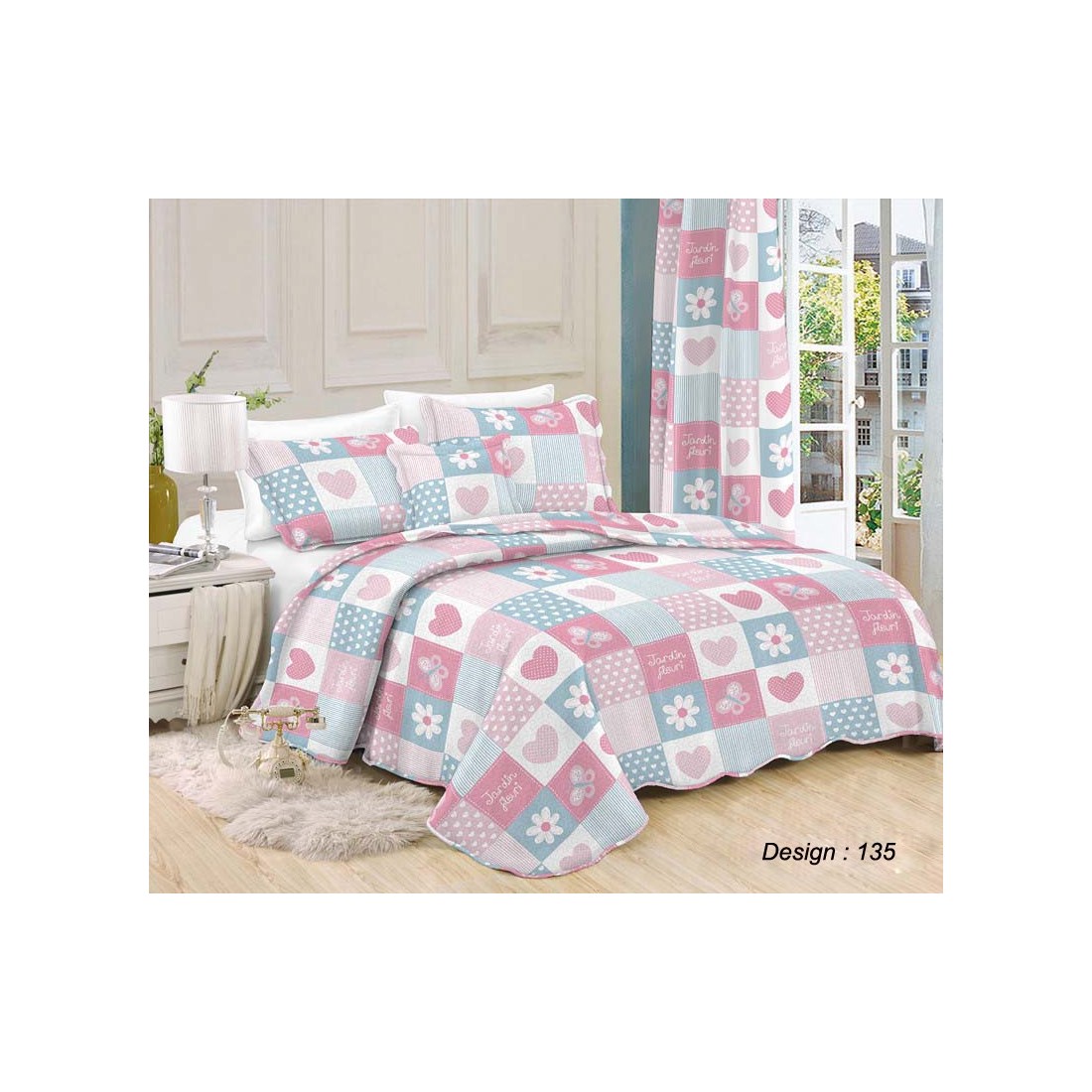 Κουβερλί υπέρδιπλο με χαρούμενα ανοιξιάτικα χρώματα και 2 μαξιλαροθήκες
