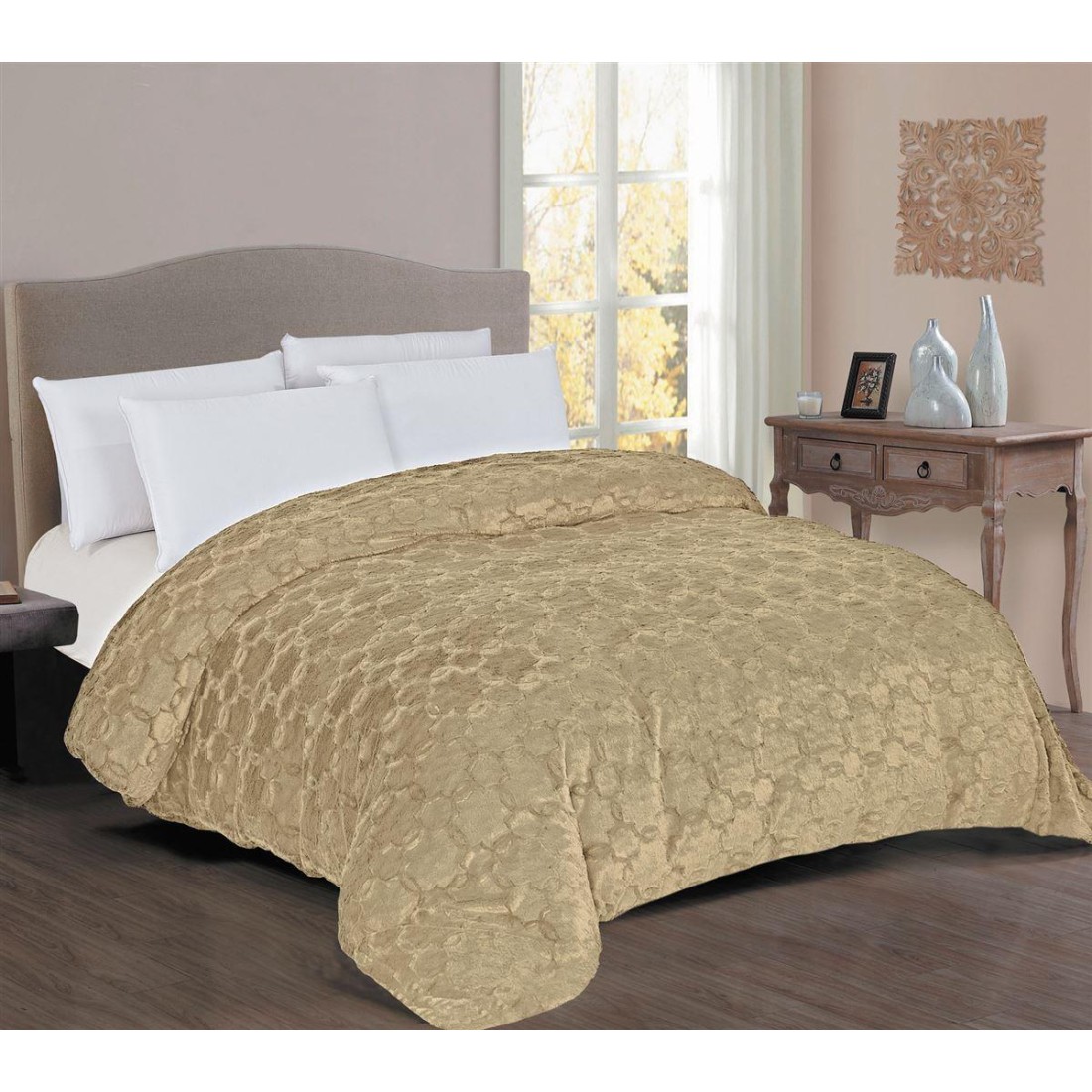 Κουβερτοπάπλωμα διαστάσεων 160X220cm με καπιτοναρισμένο γεωμετρικό σχέδιο στην πάνω όψη. εξαιρετικής ποιότητας με επένδυση απαλής γούνας 250 gsm στην πάνω πλευρά. 200 gsm sherpa στην κάτω πλευρά και γέμισμα αντιαλλεργικής βάτας 280 gsm. -Ιδιαίτερα ζεστό και ταυτόχρονα διακοσμητικό κάλυμμα κρεβατιού. -Συσκευασία σακούλα PVC με σύρμα περιμετρικά και χερούλια. Βάρος gsm : 730 γρ/τμ