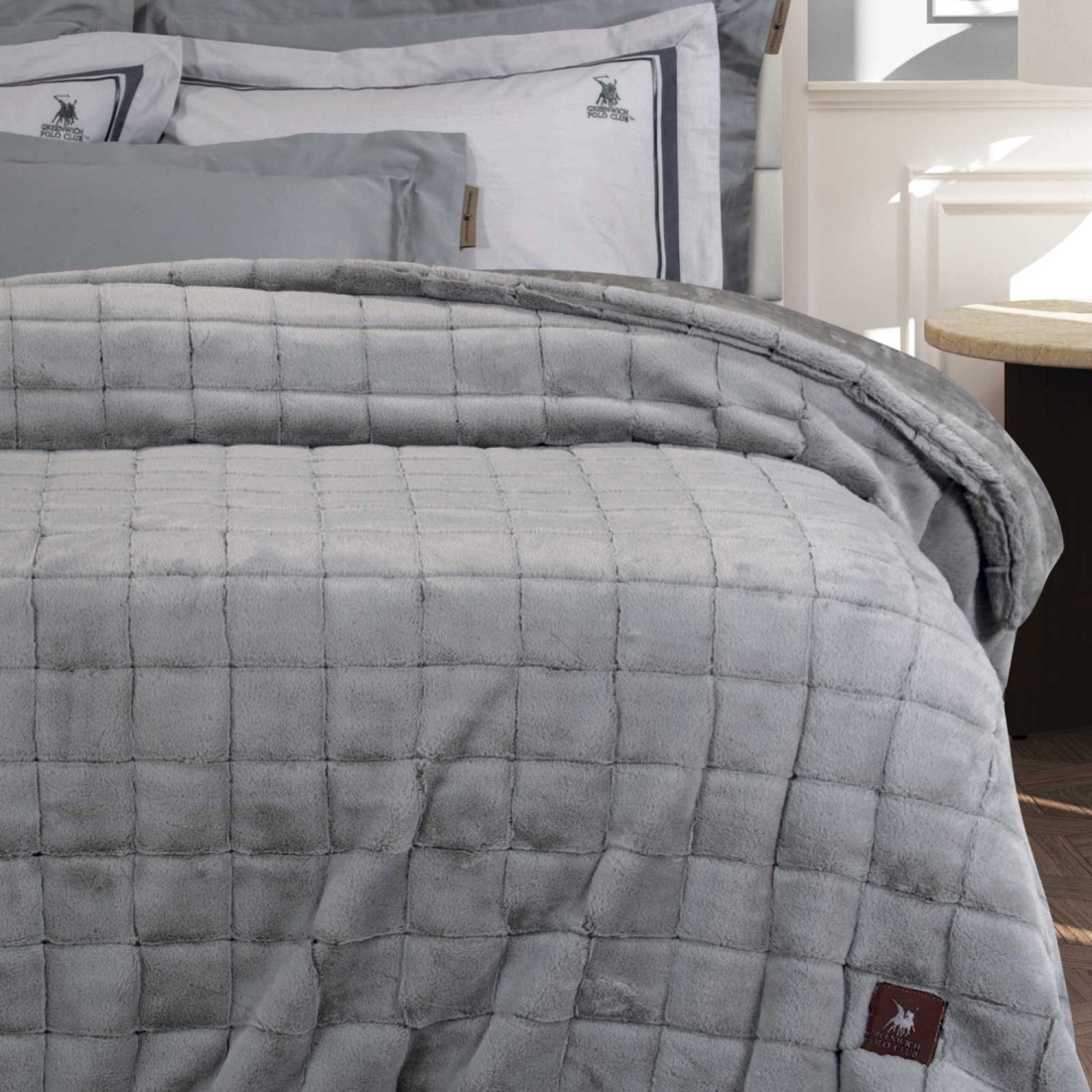 Κουβερτοπάπλωμα του οίκου Greenwich Polo Club. To ύφασμα της πάνω πλευράς είναι από 100% faux fur, ενώ η πίσω πλευρά είναι φανέλα. Το εσωτερικό του γέμισμα είναι από 100% hollowfiber και είναι ιδιαίτερα απαλό και ζεστό με θερμότητα 10 Tog και βάρος 680gr/m². Προσφέρεται στη διάσταση 220X240εκ.