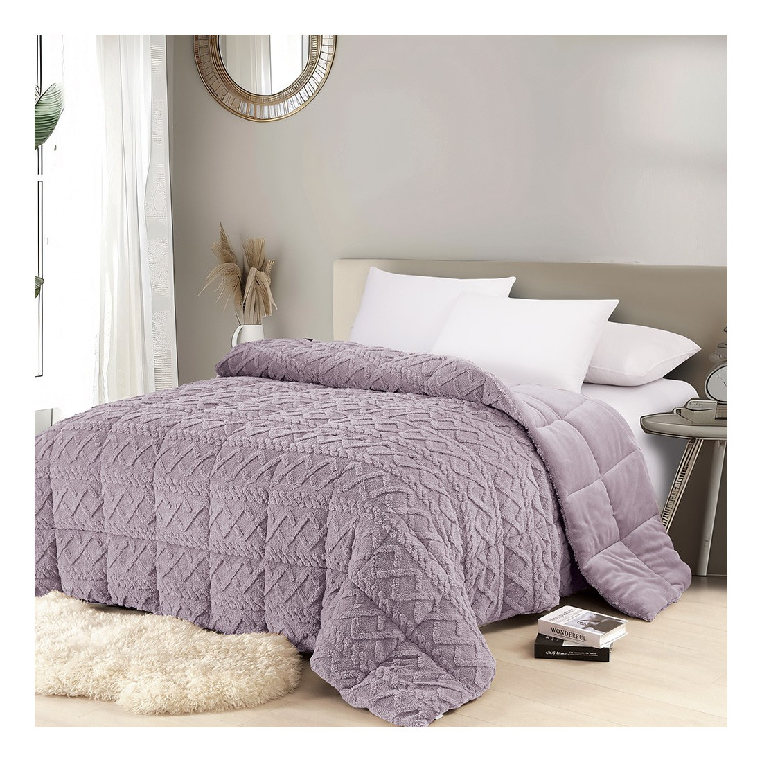 Το κουβερτοπάπλωμα Ian είναι κατασκευασμένο από Jacquard Sherpa 250gsm εξωτερικά Flannel 200gsm εσωτερικά. ενώ διαθέτει γέμιση από 100% hollowfiber 300gsm. Αποτελεί το ιδανικό σκέπασμα για τους χειμερινούς μήνες του χρόνου αφού χαρίζει αίσθημα απόλυτης ζεστασιάς απαλότητας ακόμα και τις πιο κρύες νύχτες. Με μοντέρνο ανάγλυφο σχέδιο. θα δώσει στυλ σε κάθε υπνοδωμάτιο. Διατίθεται σε δυο διαστάσεις και τέσσερις μοντέρνες αποχρώσεις.