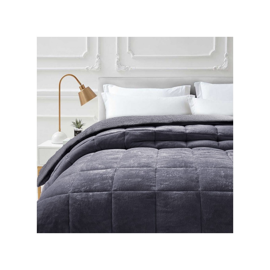 ΠΑΠΛΩΜΑ ΜΟΝΟ 160X240-FLAΝNEL-SHERPA LUSTER CARBONE-Κουβερτοπάπλωμα με βελούδινη υφή κουβέρτας σε μοντέρνα αλλά και κλασικά χρώματα. Η επάνω πλευρά είναι κατασκευασμένη από απαλό μονόχρωμο Flannel Fleece ύφασμα . ενώ η κάτω πλευρά από ασσορτί χρώμα sherpa . Το κουβερτοπάπλωμα εκτός από την χειμερινή διακόσμηση του υπνοδωματίου σας. χαρίζει στον ύπνο σας απαλότητα και ζεστασιά στις κρύες νύχτες του χειμώνα. Επιλέξτε ανάμεσα από 4 αποχρώσεις και σε διαστάσεις υπέρδιπλου ή μονού.