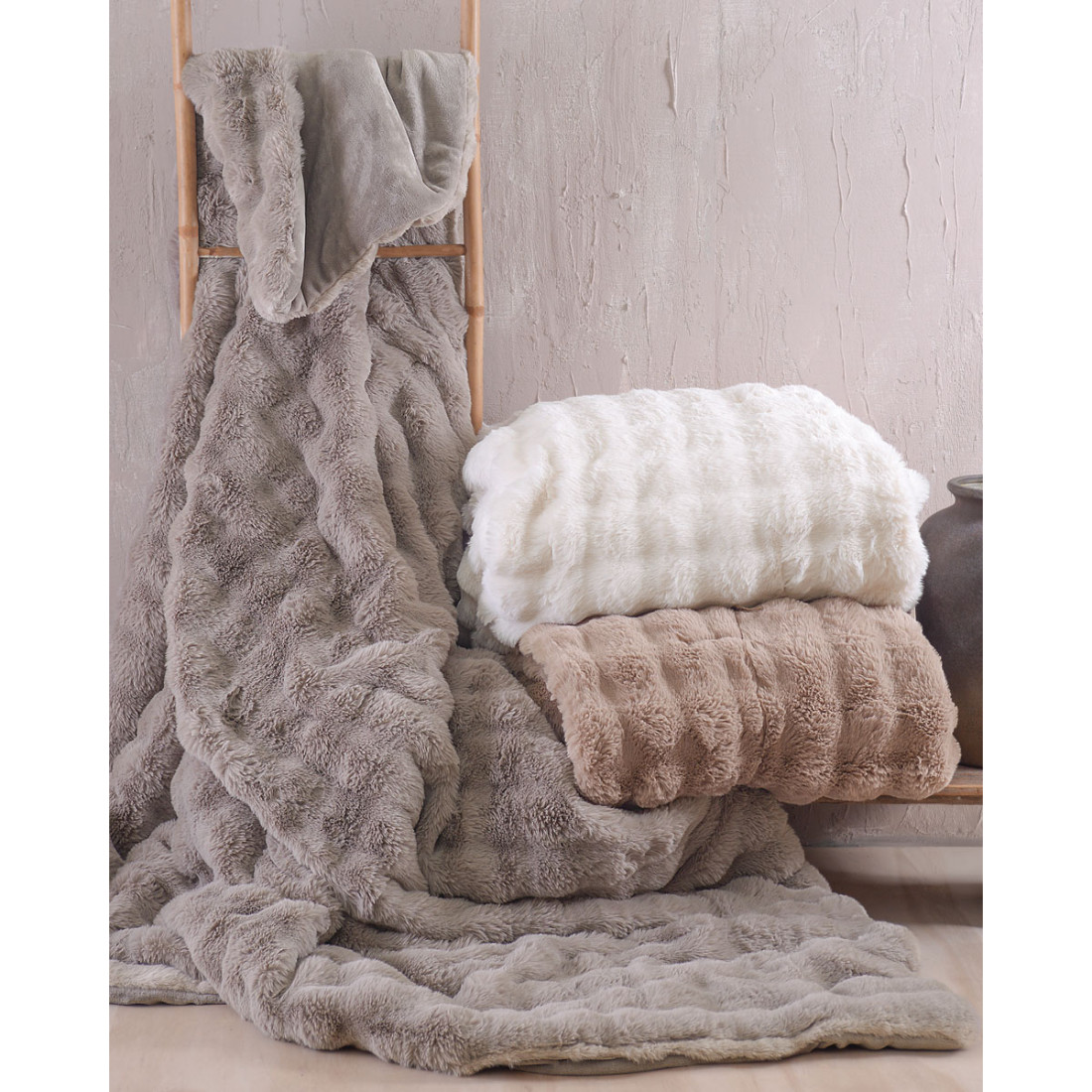 Κουβερτοπάπλωμα ημίδιπλο 160X220 σε μπεζ χρώμα. με απίστευτα απαλή rabbit eco fur από την πάνω μεριά και από την κάτω flannel fleece στο ίδιο χρώμα με την επιφάνεια. Πρόκειται για το πιο ζεστό κουβερτοπάπλωμα της συλλογής μας και αποτελεί ιδανικό σκέπασμα για τους χειμερινούς μήνες. ΑΝΩ ΟΨΗ: Jacquard Rabbit Eco Fur (400gr/m2) ΚΑΤΩ ΟΨΗ:Flannel Fleece Ιδίου Χρώματος (180gr/m2) ΓΕΜΙΣΜΑ: Polyfill (150gr/m2) Bάρος: 730gr/m2