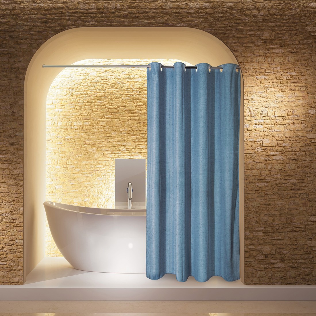 Kουρτίνα μπάνιου μουαρέ υφασμάτινη της σειράς Essential, με ενσωματωμένους κρίκους για εύκολη τοποθέτηση. Πλένεται στο πλυντήριο στους 30 C &