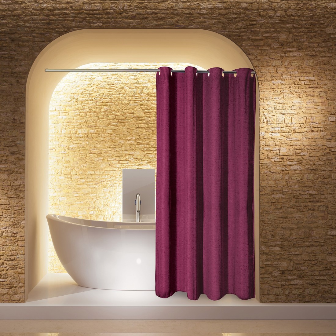 Kουρτίνα μπάνιου μουαρέ υφασμάτινη της σειράς Essential, με ενσωματωμένους κρίκους για εύκολη τοποθέτηση. Πλένεται στο πλυντήριο στους 30 C &