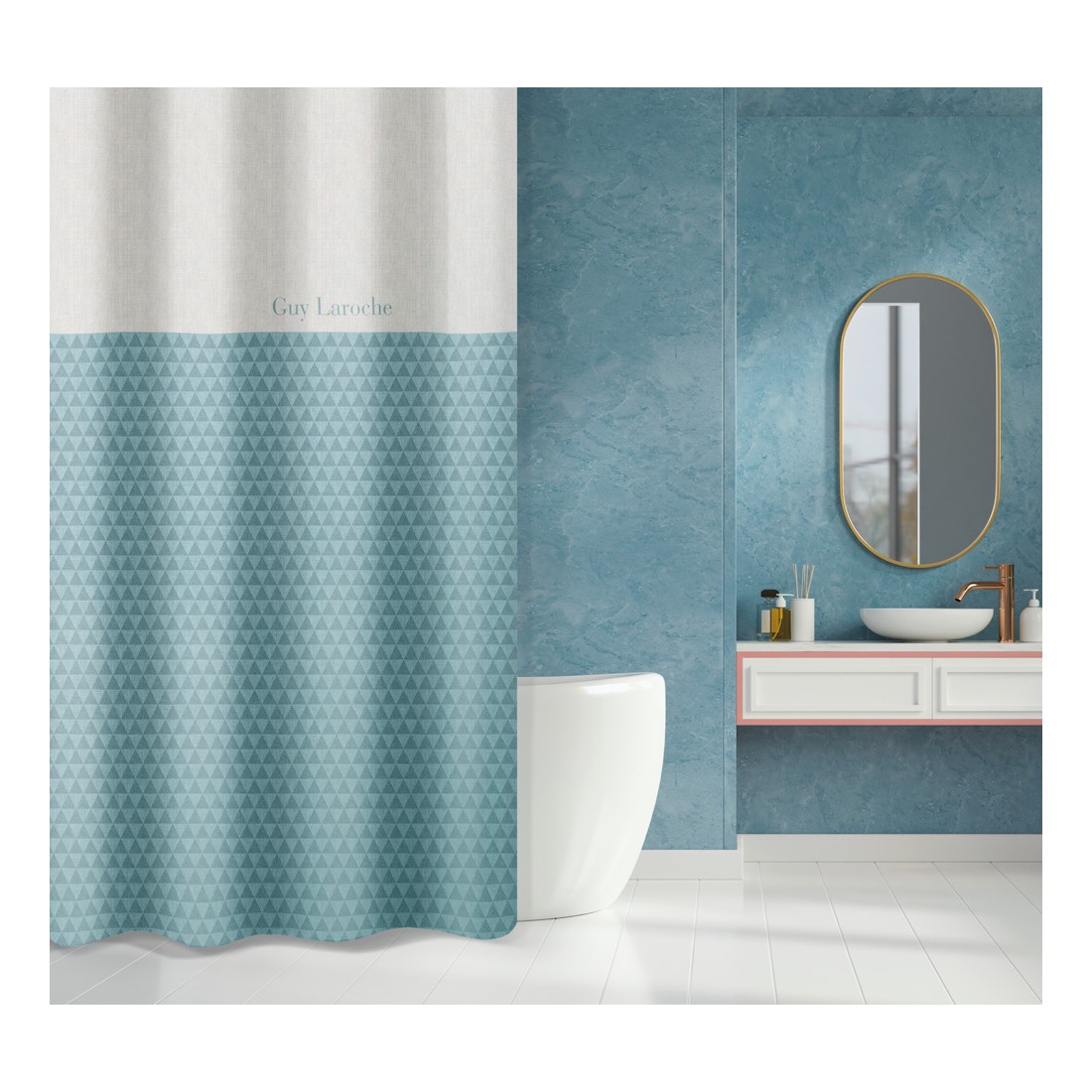 Κουρτίνα μπάνιου υφασμάτινη κατασκευασμένη από 100% polyester με ειδική επεξεργασία water repellant για να στεγνώνει γρήγορα. διαθέτει τρουκς για εύκολη τοποθέτηση. Συνδυάστε με το αντίστοιχο σετ πετσετών μπάνιου και μπουρνούζι για μία ολοκληρωμένη εικόνα στο μπάνιο σας. Διάσταση 240x185εκ.