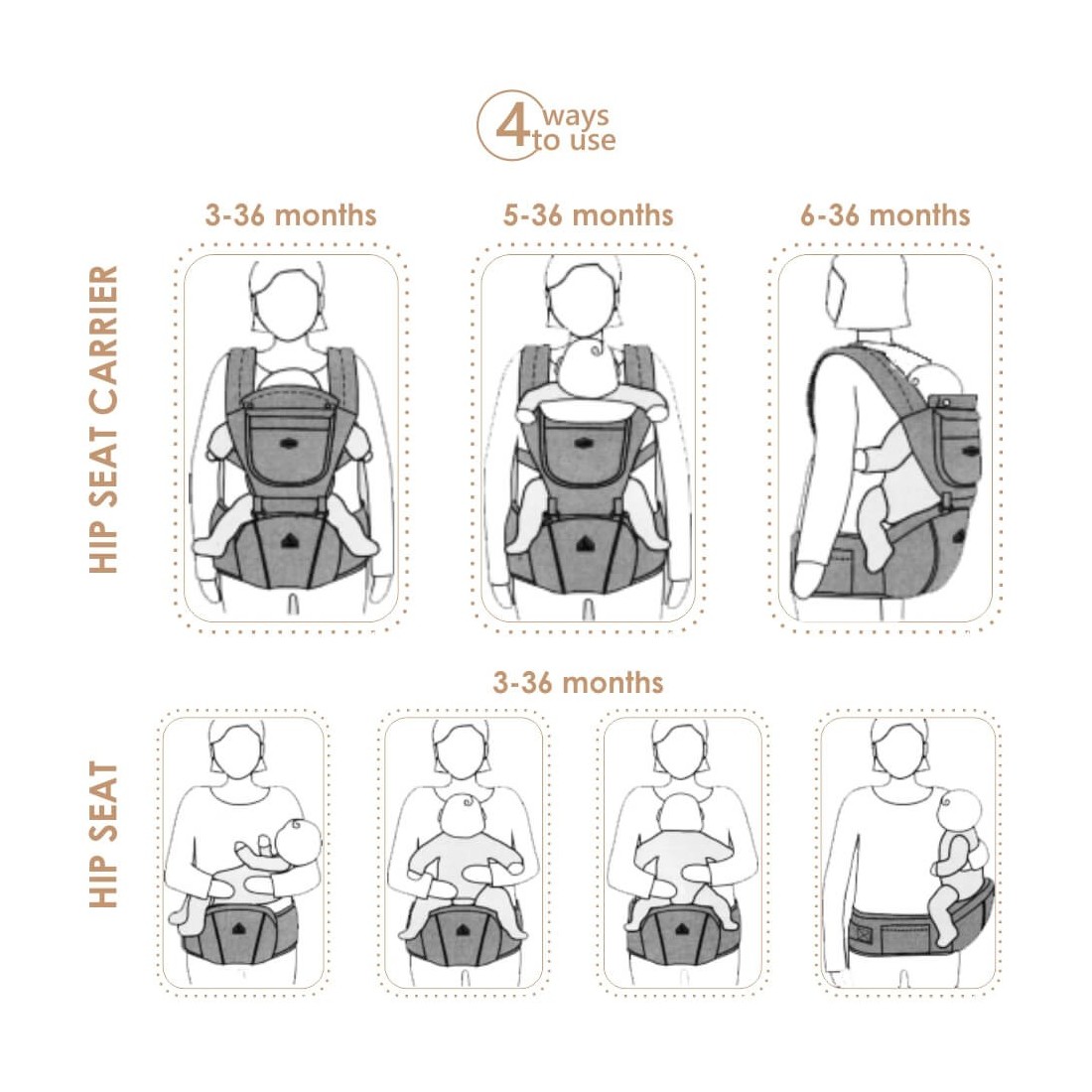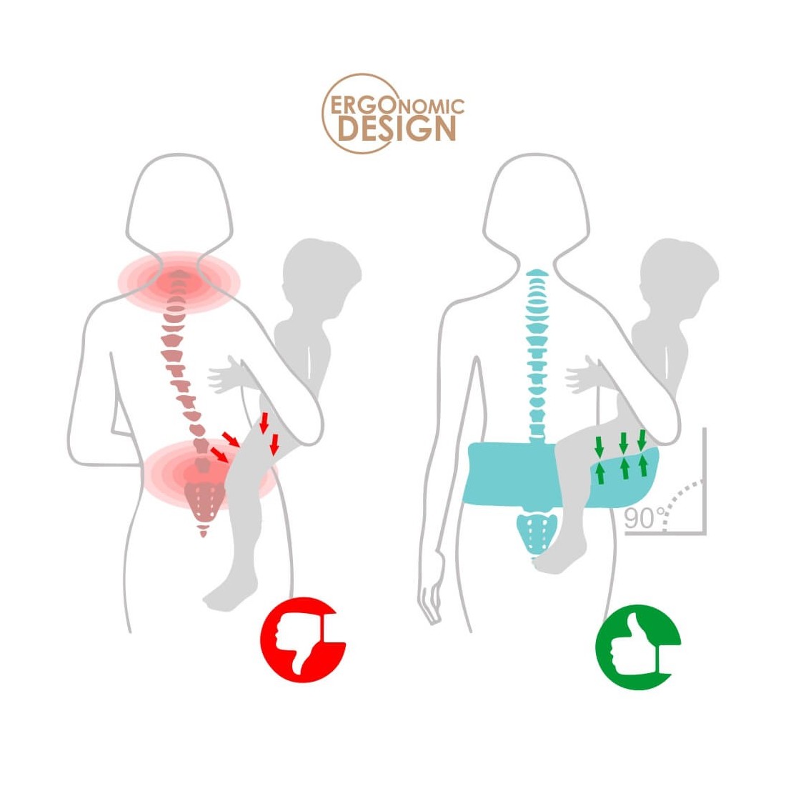 Προσφέρει τη σωστή υποστήριξη στα πόδια του μωρού και ενισχύει τη σωστή ανάπτυξη των μηρών-συνδέσμων, που είναι πολύ σημαντική στους πρώτους μήνες της ζωής των μωρών (hip-healthy από το Διεθνές Ινστιτούτο για τη δυσπλασία των μηρών).