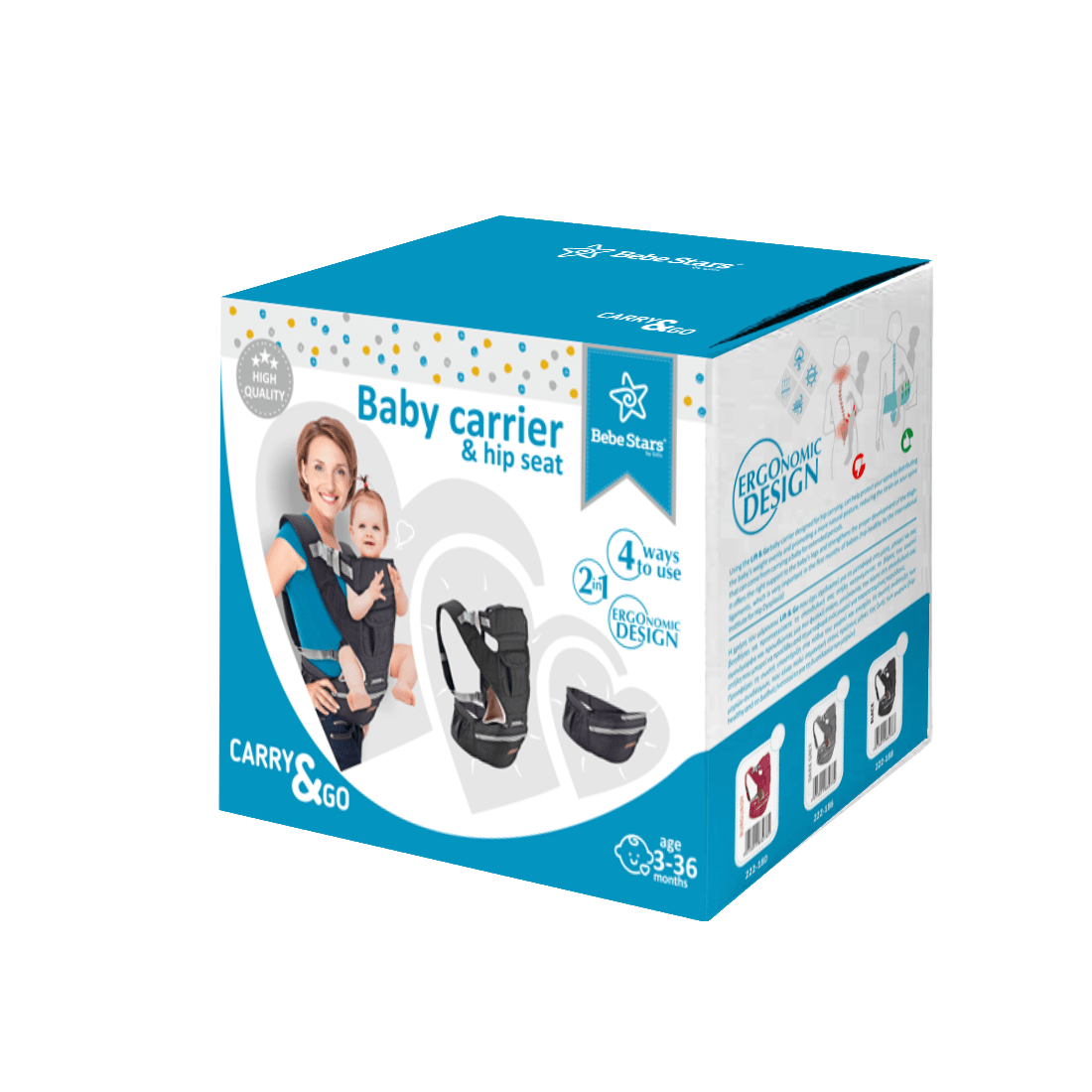 Σας παρουσιάζουμε τον ευέλικτο και πρακτικό μάρσιπο Carry & Go της Bebe Stars, ιδανικό για γονείς εν κινήσει! Αυτός ο μάρσιπος προσφέρει τέσσερις διαφορετικούς τρόπους χρήσης, επιτρέποντάς σας να βρείτε την τέλεια θέση τόσο για εσάς όσο και για το μωρό σας. Είτε προτιμάτε να κοιτάζει προς τα εμπρός, προς τα πίσω, να το φέρετε στους γοφούς καθισμένο ή πίσω στη πλάτη σας, αυτός ο μάρσιπος σας καλύπτει.