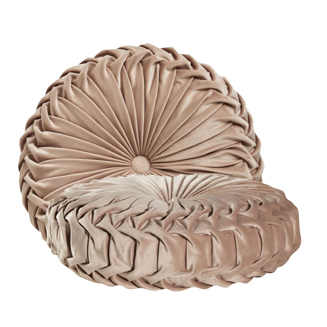 Διακοσμητικό στρογγυλό μαξιλάρι με κουμπί . Tο ύφασμα είναι από 100% polyester, έχει βελούδινη υφή, είναι υποαλλεργικό και πολύ ανθεκτικό στη χρήση. Διατίθεται σε διάσταση φ.40εκ.