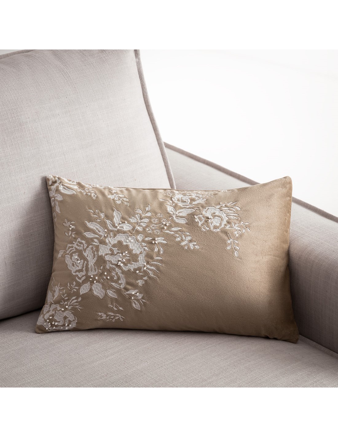 Από απαλό βελούδινο ύφασμα με κεντημένο ανάγλυφο σχέδιο.