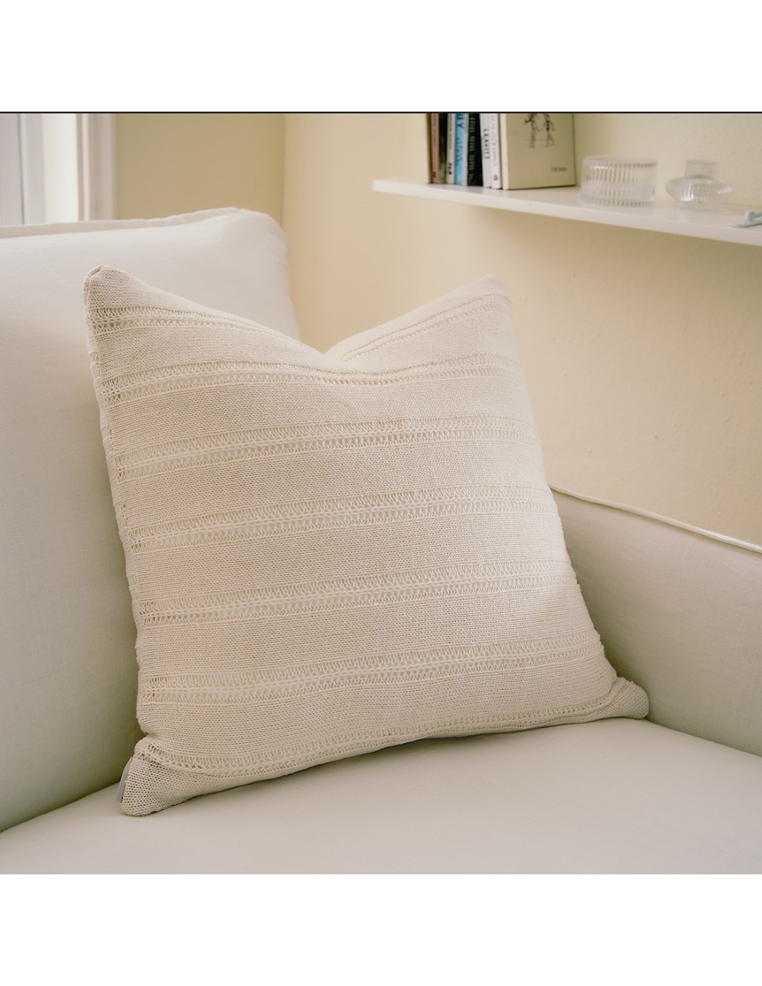 Πλεκτή διακοσμητική μαξιλαροθήκη διπλής όψης από βαμβακερά νήματα.