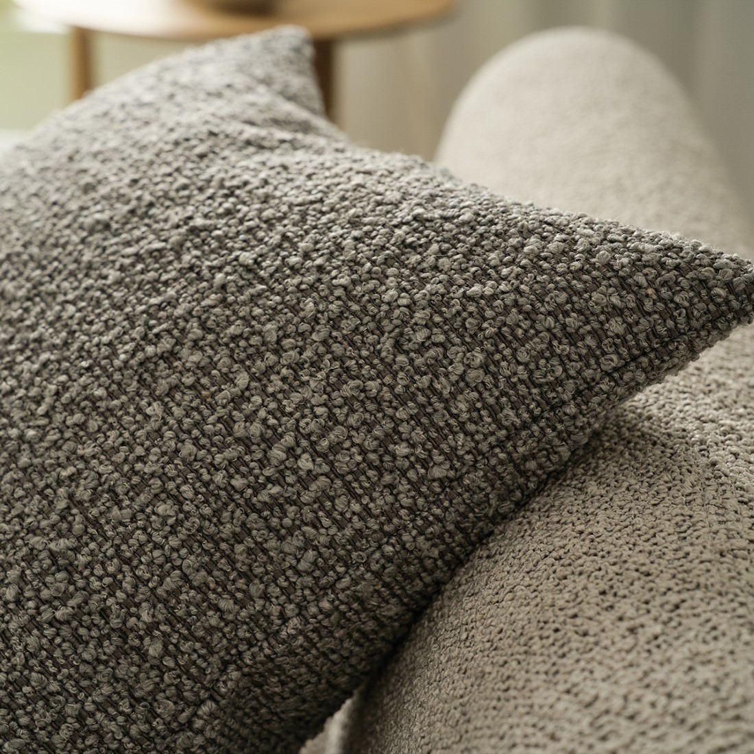Μονόχρωμη μαξιλαροθήκη από μπουκλέ ύφασμα.