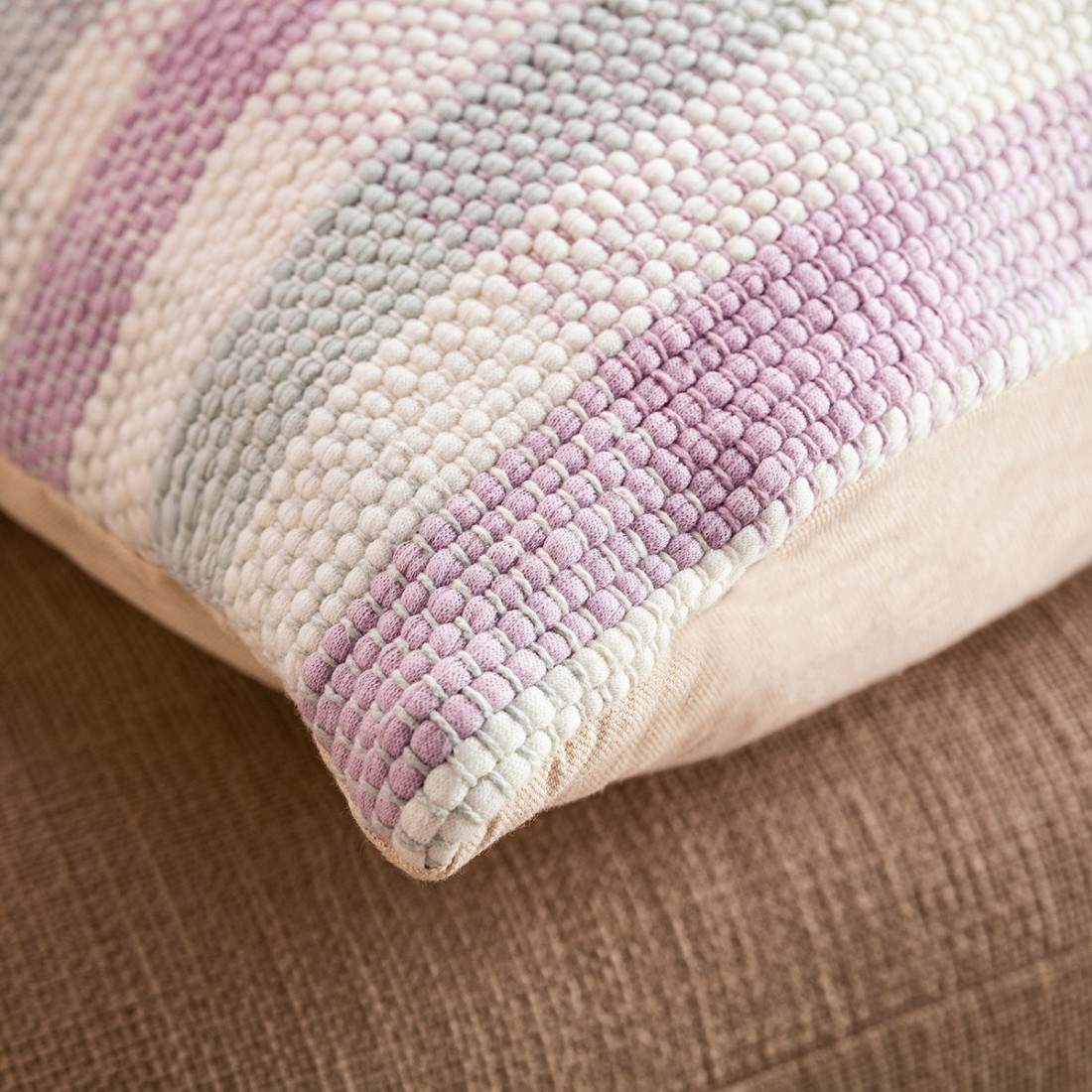 Διακοσμητική μαξιλαροθήκη με Ιδιαίτερη κατασκευή. Πλεκτή, με βαμβακερά κορδόνια που δημιουργούν μία ανάγλυφη όψη. 100% βαμβακερό ύφασμα.