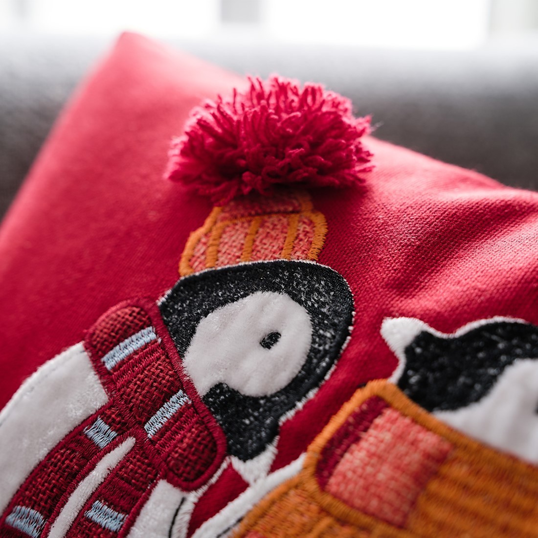 Μαξιλαροθήκη με κεντημένο ανάγλυφο εορταστικό σχέδιο.