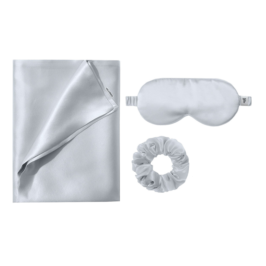 Σετ 3 τεμαχίων \"Beauty Sleep\"" αποτελούμενο από μία μαξιλαροθήκη, μάσκα ύπνου και scrunchie (λαστιχάκι μαλλιών) με την υπογραφή της FEEL & TOUCH. Το σετ είναι κατασκευασμένο από 100% Mulberry Silk, από τα καλύτερα ήδη μεταξιού στον κόσμο. Ιδανικό για να αναβαθμίσετε την ποιότητα του ύπνου σας, των μαλλιών σας και της επιδερμίδας σας. Ανακαλύψτε όλα τα χρώματα της συλλογής \""Beauty Sleep\"". "