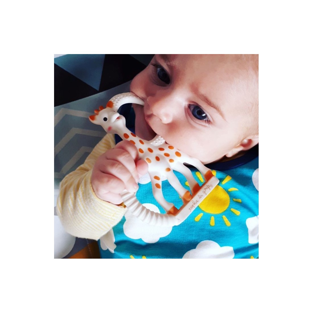 Σε όμορφο χρώμα, με τη φιγούρα της Shophie της καμηλοπάρδαλης και με κλιπ που κρατάει τον δακτύλιο οδοντοφυΐας ή που μπορείτε να κρεμάσετε την πιπίλα σας και να τη βρίσκεται εύκολα μέρα και νύχτα.