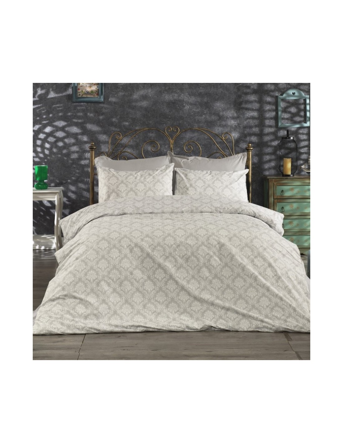 Κατασκευασμένo στην πάνω πλευρά από ύφασμα Εμπριμέ σύνθεσης βαμβάκι 70% - Πολυέστερ 30%, 144 Κλωστών, σε χαρούμενα και απαλά χρώματα, με μοντέρνες και σύγχρονες παραστάσεις και στη κάτω πλευρά από Μονόχρωμο Grey κομποζέ ύφασμα Μελανζέ της ίδιας σύνθεσης. Κατασκευάζεται στην Ελλάδα.