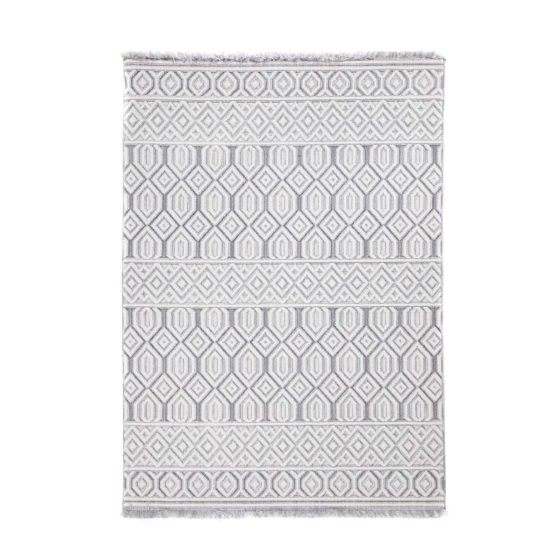 Μοντέρνα ανάγλυφα χαλιά τριών επιπέδων με ιδιαίτερη γυαλάδα στην επιφάνεια και μοναδικό κρόσσι. Σε λευκούς, ασημί και γκρι χρωματισμούς ανανεώνει το χώρο σας και αποτελεί ξεχωριστή πρόταση τόσο για το σαλόνι καθώς για την κρεβατοκάμαρά σας. Πρακτικό και εύκολο στο καθάρισμα.